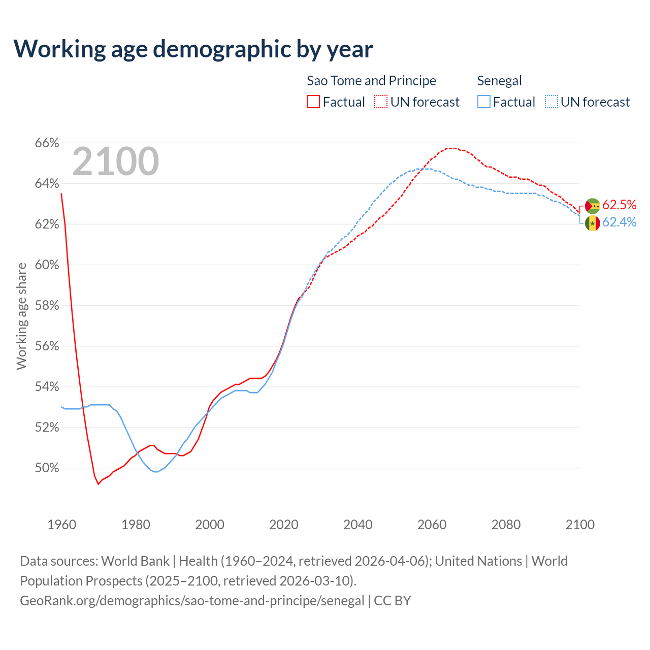 - Sao Tome and Principe has 144K working age adults (aged 15-64) vs 11.3M in Senegal.