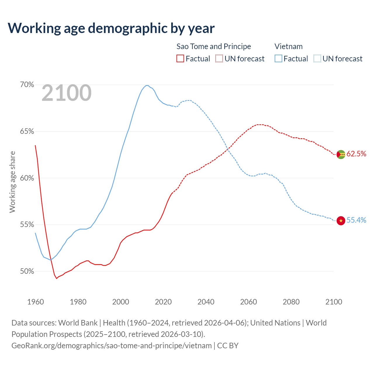 - Sao Tome and Principe has 144K working age adults (aged 15-64) vs 69.3M in Vietnam.