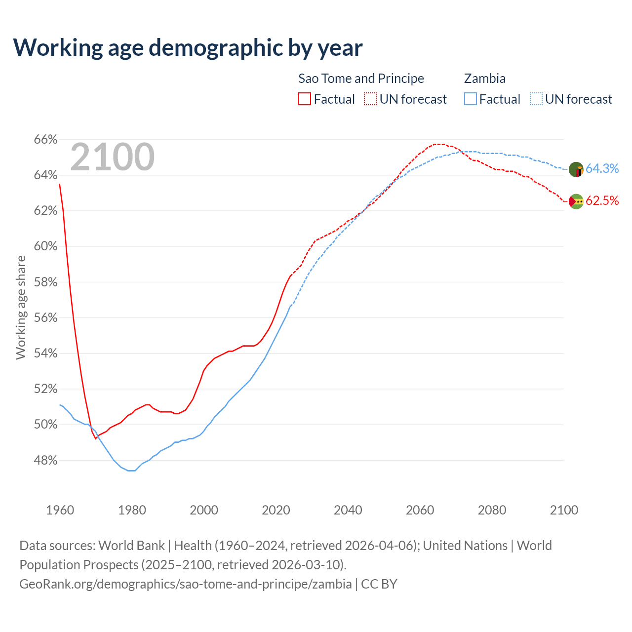 - Sao Tome and Principe has 144K working age adults (aged 15-64) vs 12.8M in Zambia.