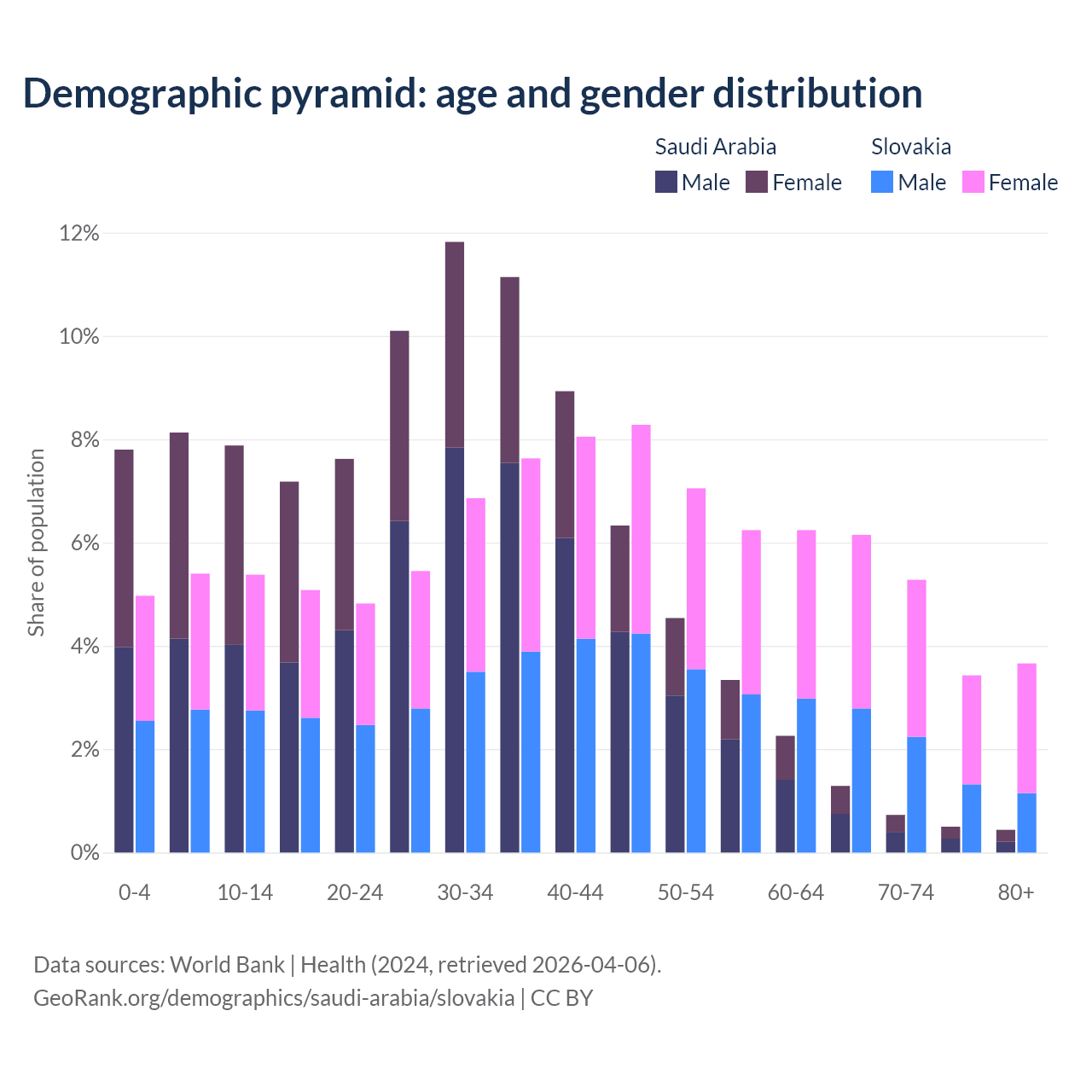 Demographics of Saudi Arabia compared to Slovakia: