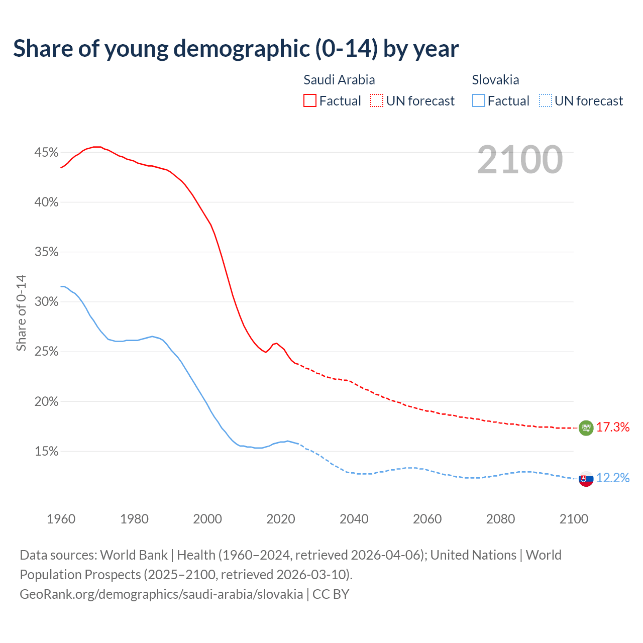 - The total fertility rate is 2.28 in Saudi Arabia compared to 1.49 in Slovakia.