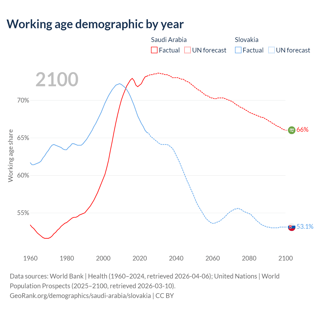 - Saudi Arabia has 26.9M working age adults (aged 15-64) vs 3.52M in Slovakia.