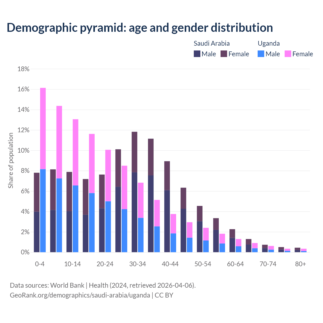Demographics of Saudi Arabia compared to Uganda: