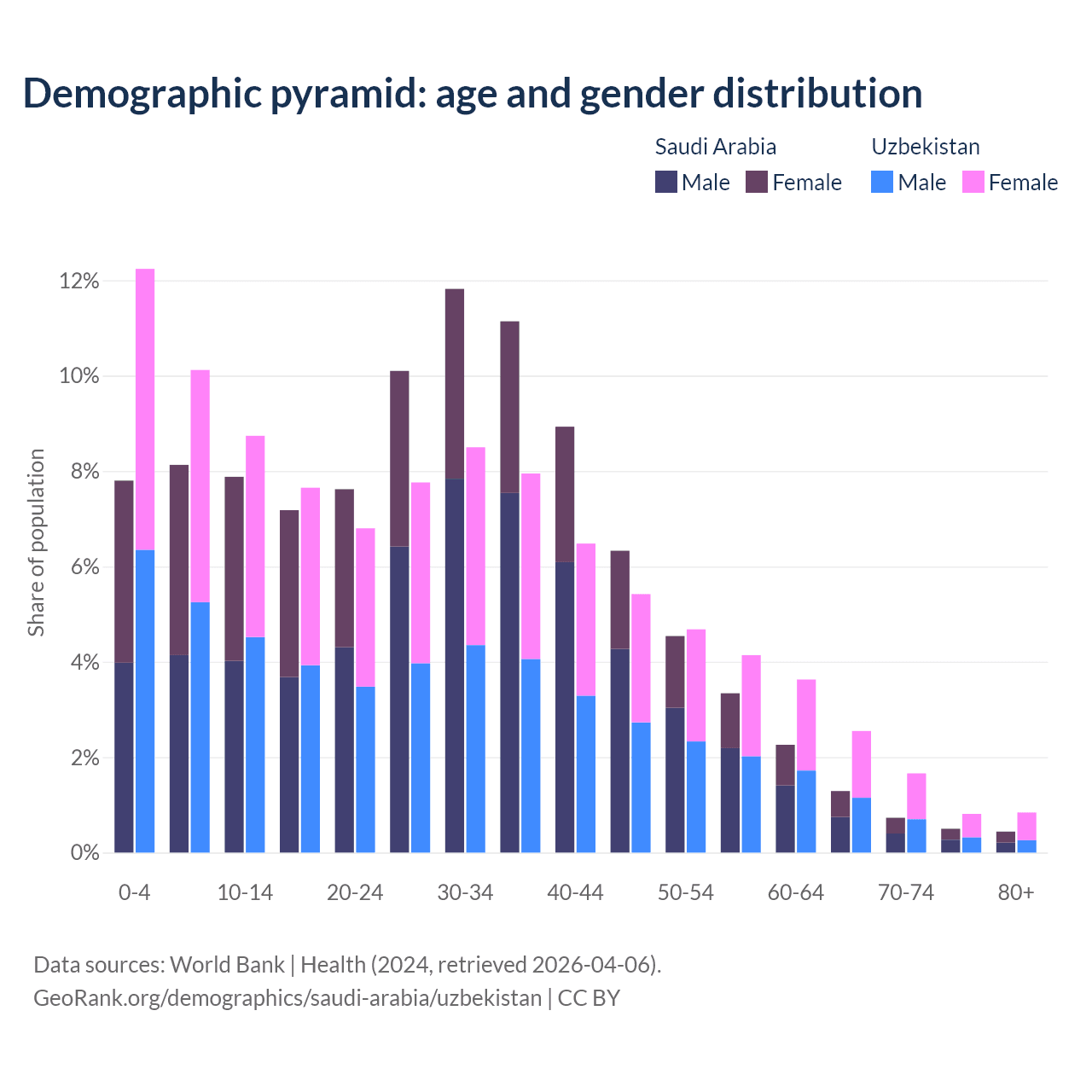 Demographics of Saudi Arabia compared to Uzbekistan: