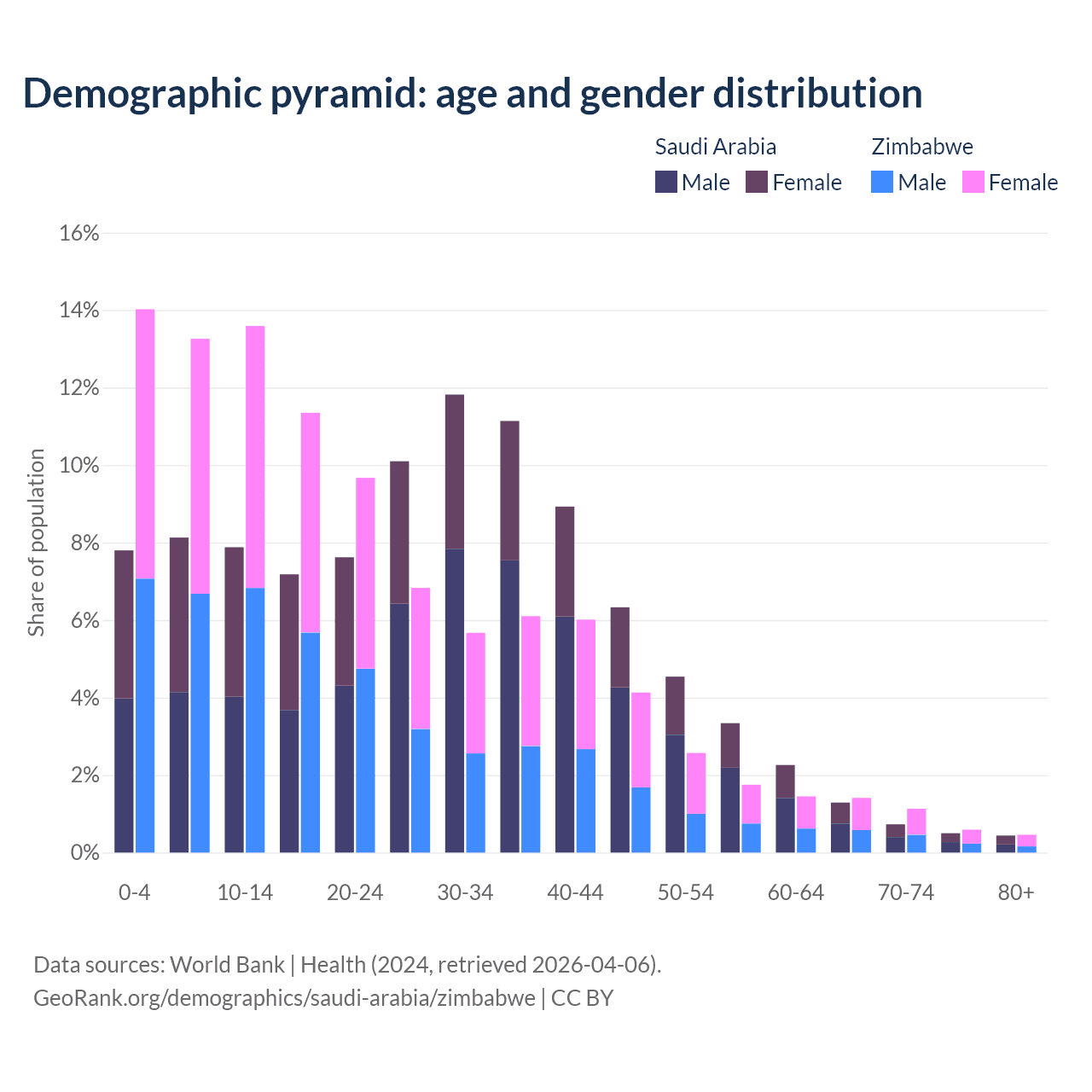 Demographics of Saudi Arabia compared to Zimbabwe: