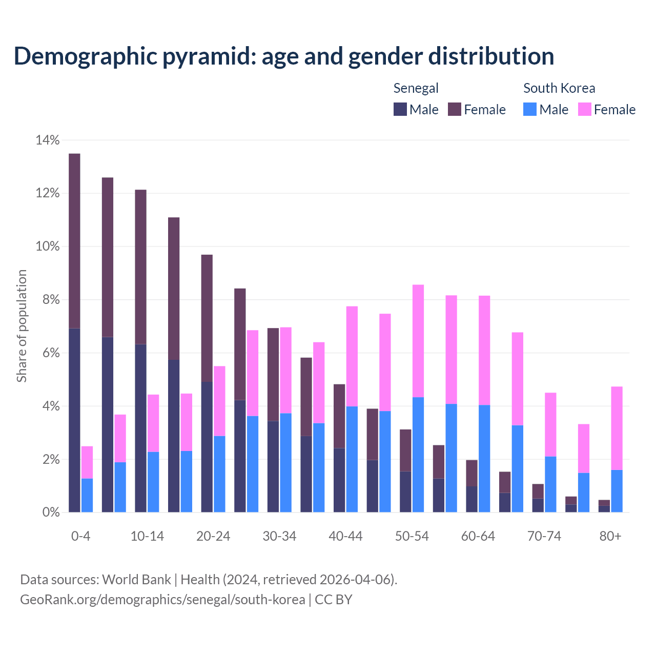 Demographics of Senegal compared to South Korea: