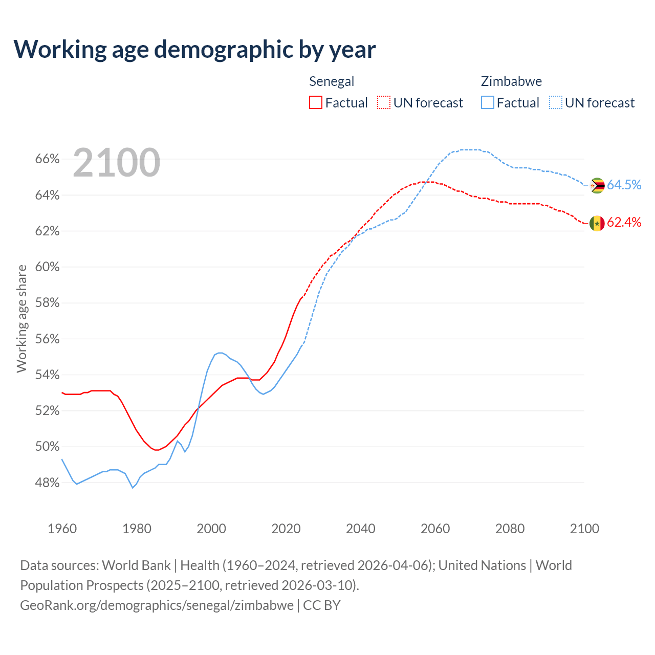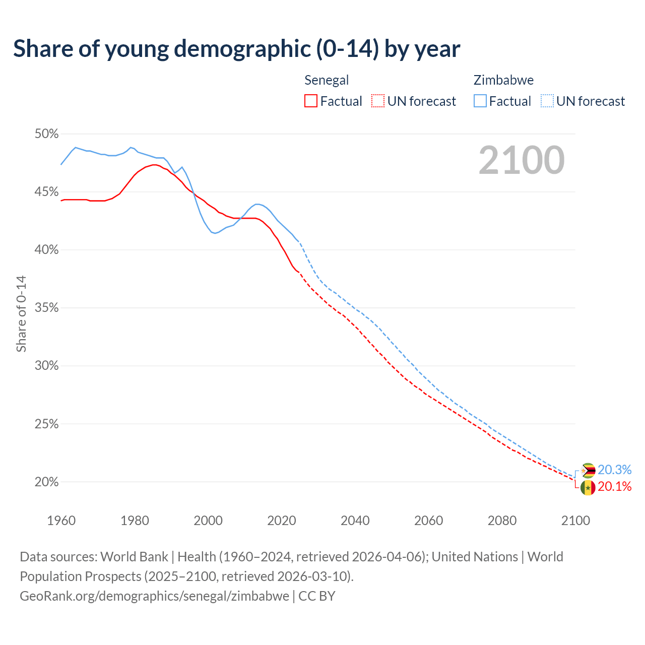 - As of 2026, the population of Senegal is 19.5M vs 17.4M in Zimbabwe.