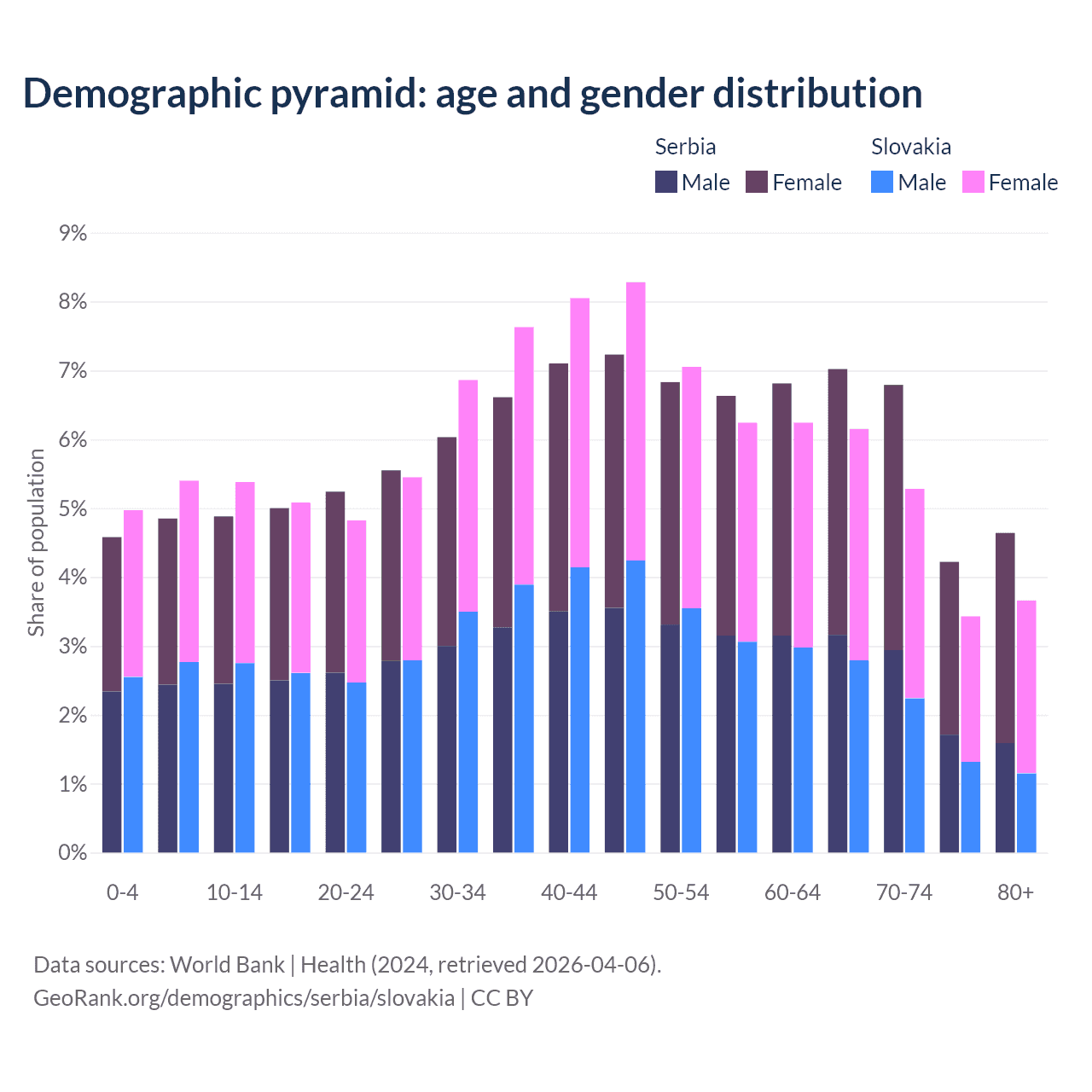 Demographics of Serbia compared to Slovakia: