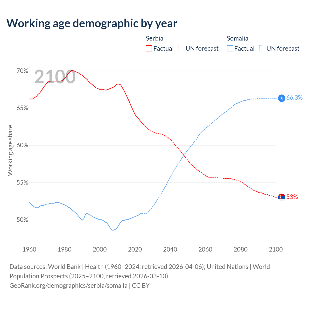 - Serbia has 4.09M working age adults (aged 15-64) vs 10.4M in Somalia.
