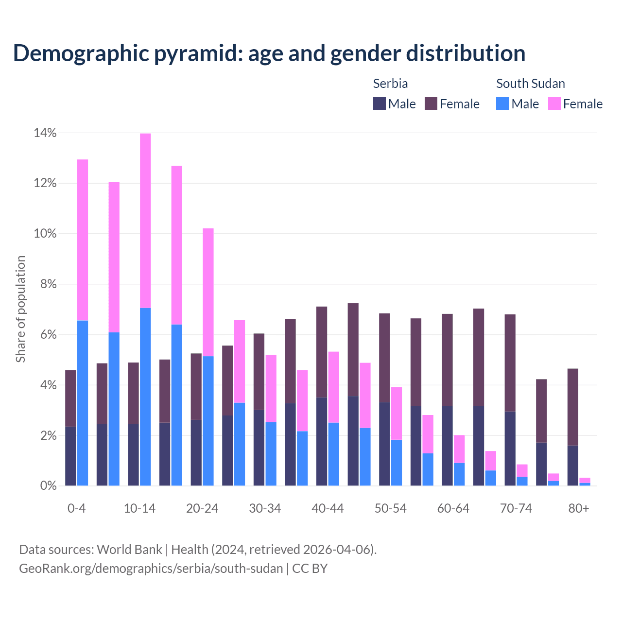 Demographics of Serbia compared to South Sudan: