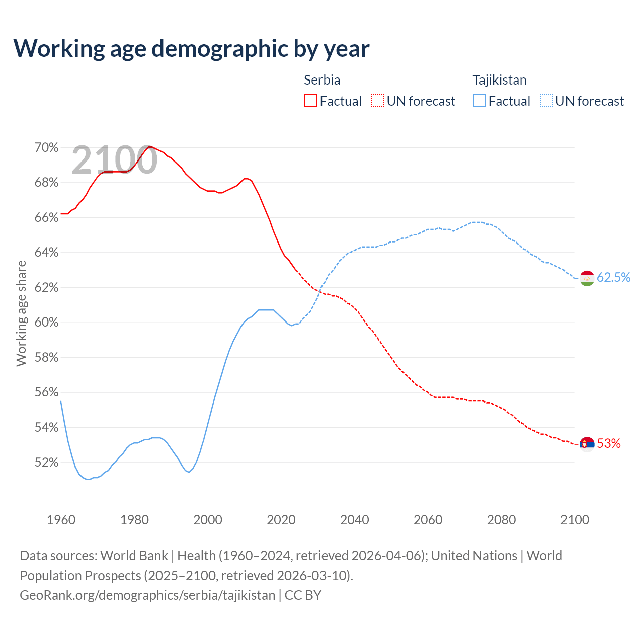 - Serbia has 4.09M working age adults (aged 15-64) vs 6.61M in Tajikistan.