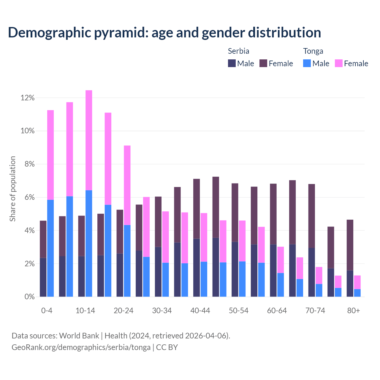 Demographics of Serbia compared to Tonga: