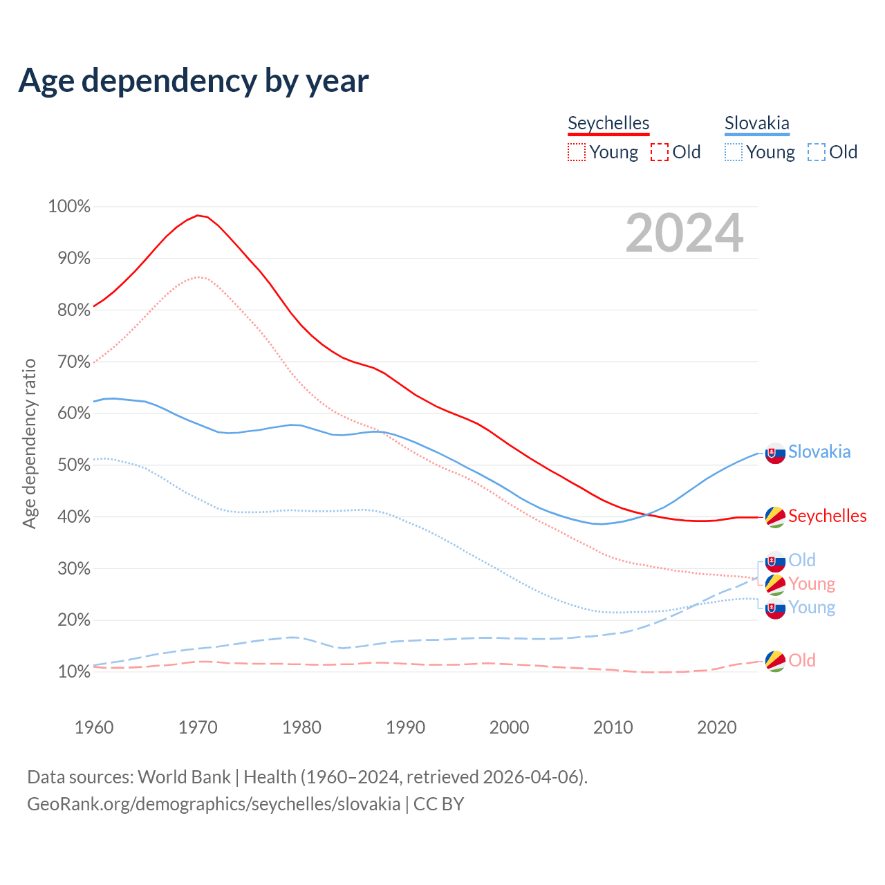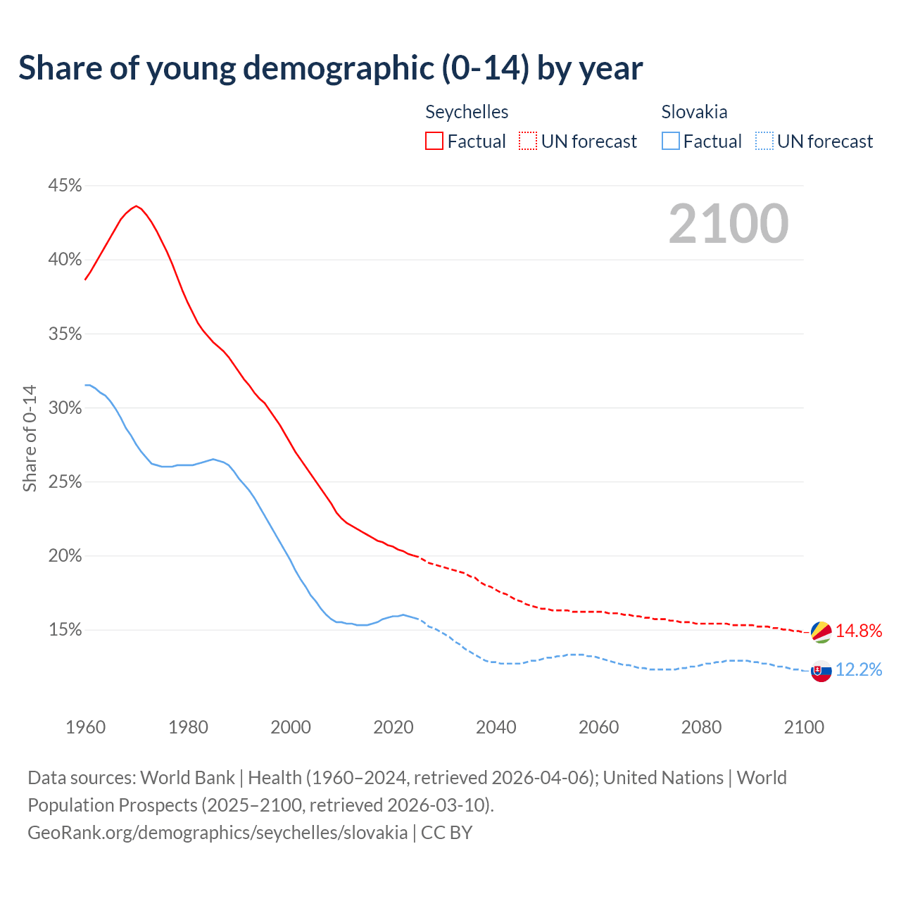 - The share of young demographic (0-15 years old) in the Seychelles is 20% vs 15.8% in Slovakia.