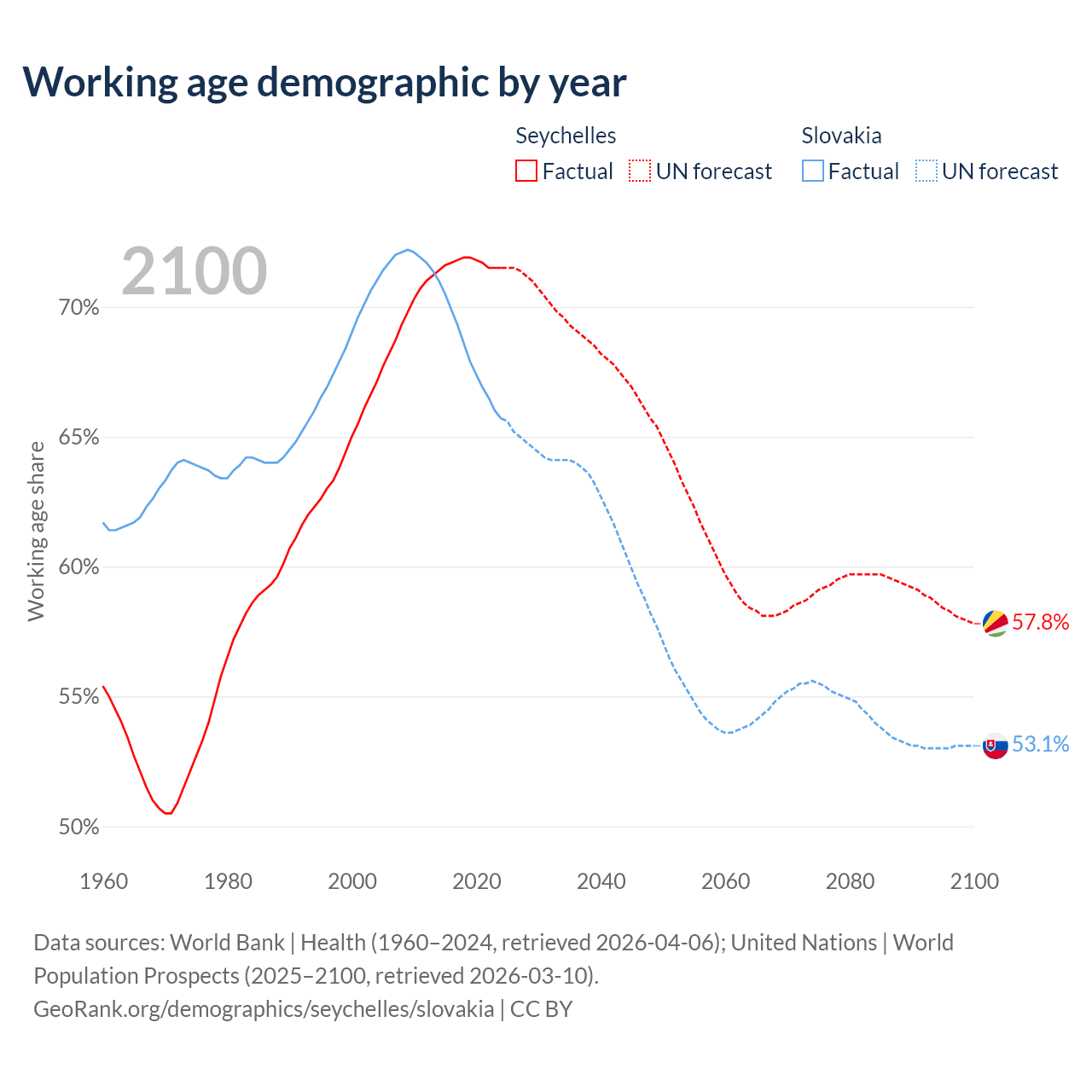 - The Seychelles has 90.3K working age adults (aged 15-64) vs 3.52M in Slovakia.