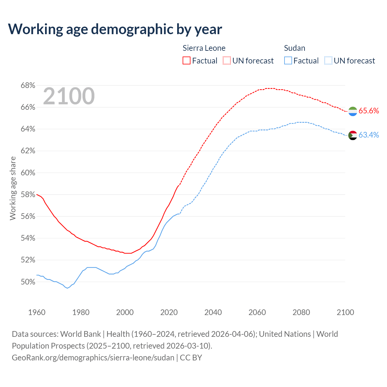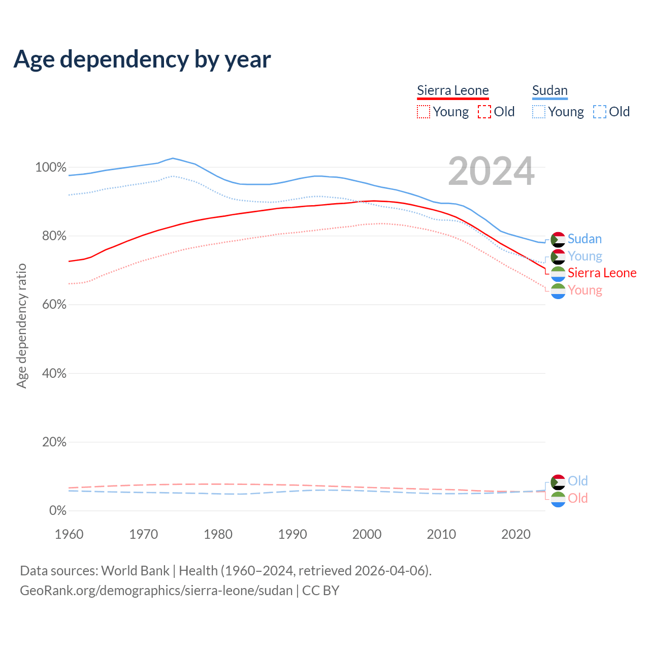 - The share of old-age demographic (65+) in Sierra Leone is 3.24% vs 3.3% in Sudan.