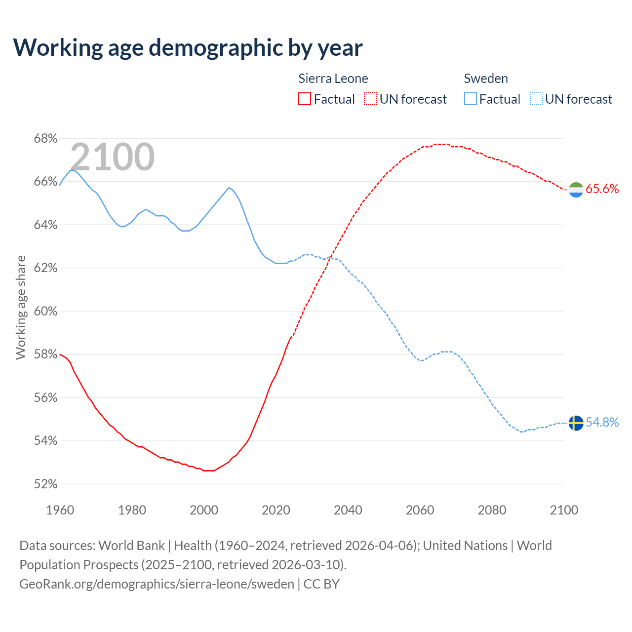 - Sierra Leone has 5.31M working age adults (aged 15-64) vs 6.65M in Sweden.