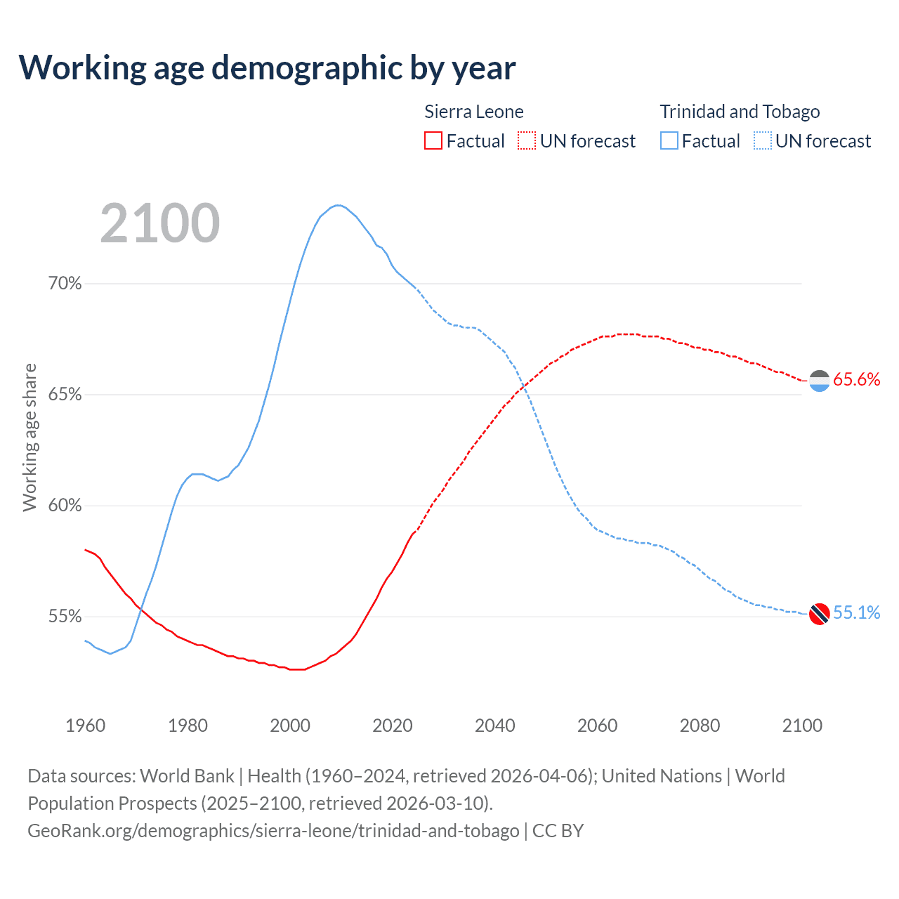 - Sierra Leone has 5.31M working age adults (aged 15-64) vs 960K in Trinidad and Tobago.