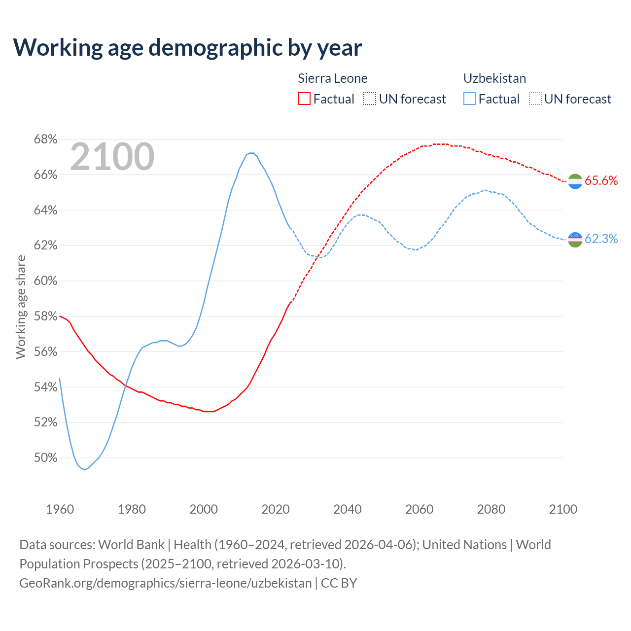 - Sierra Leone has 5.31M working age adults (aged 15-64) vs 23.9M in Uzbekistan.