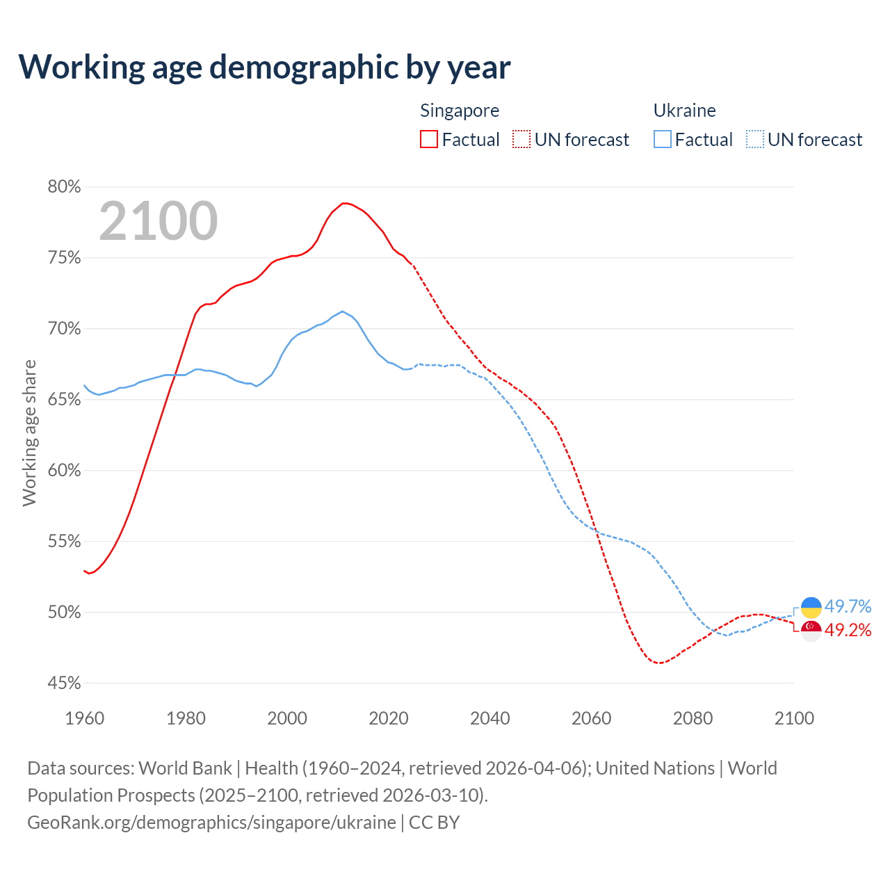 - Singapore has 4.57M working age adults (aged 15-64) vs 26.9M in Ukraine.