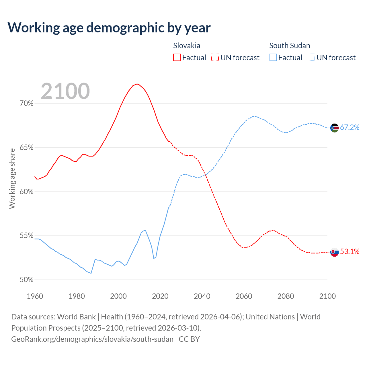 - Slovakia has 3.52M working age adults (aged 15-64) vs 7.27M in South Sudan.