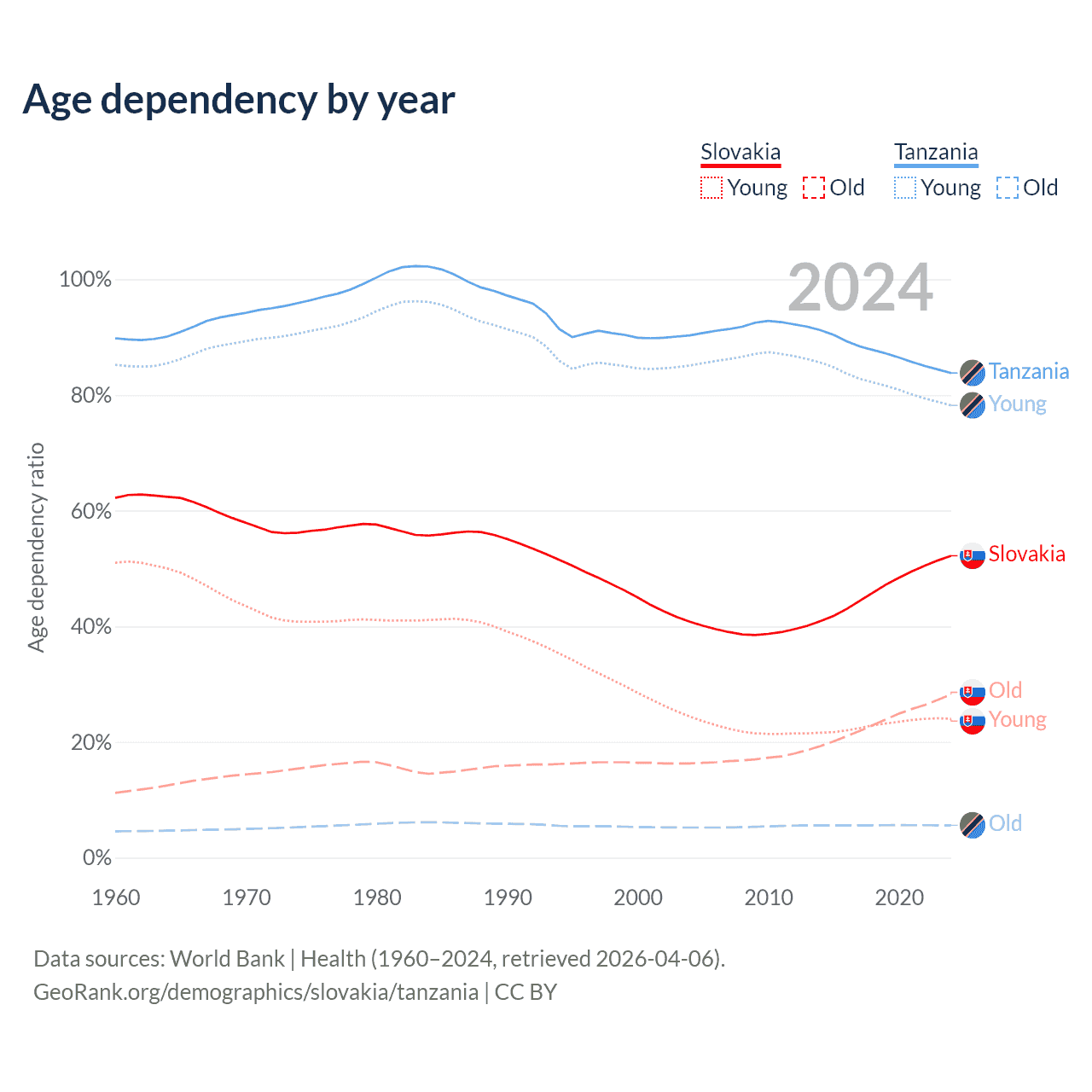 - Slovakia is ranked 31/196 by median age (oldest to youngest) vs 184/196 for Tanzania.