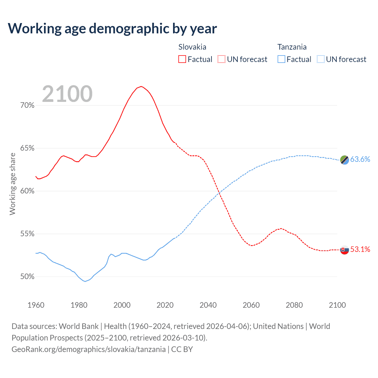 - Slovakia has 3.52M working age adults (aged 15-64) vs 39.8M in Tanzania.