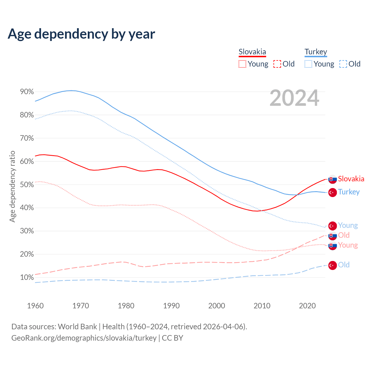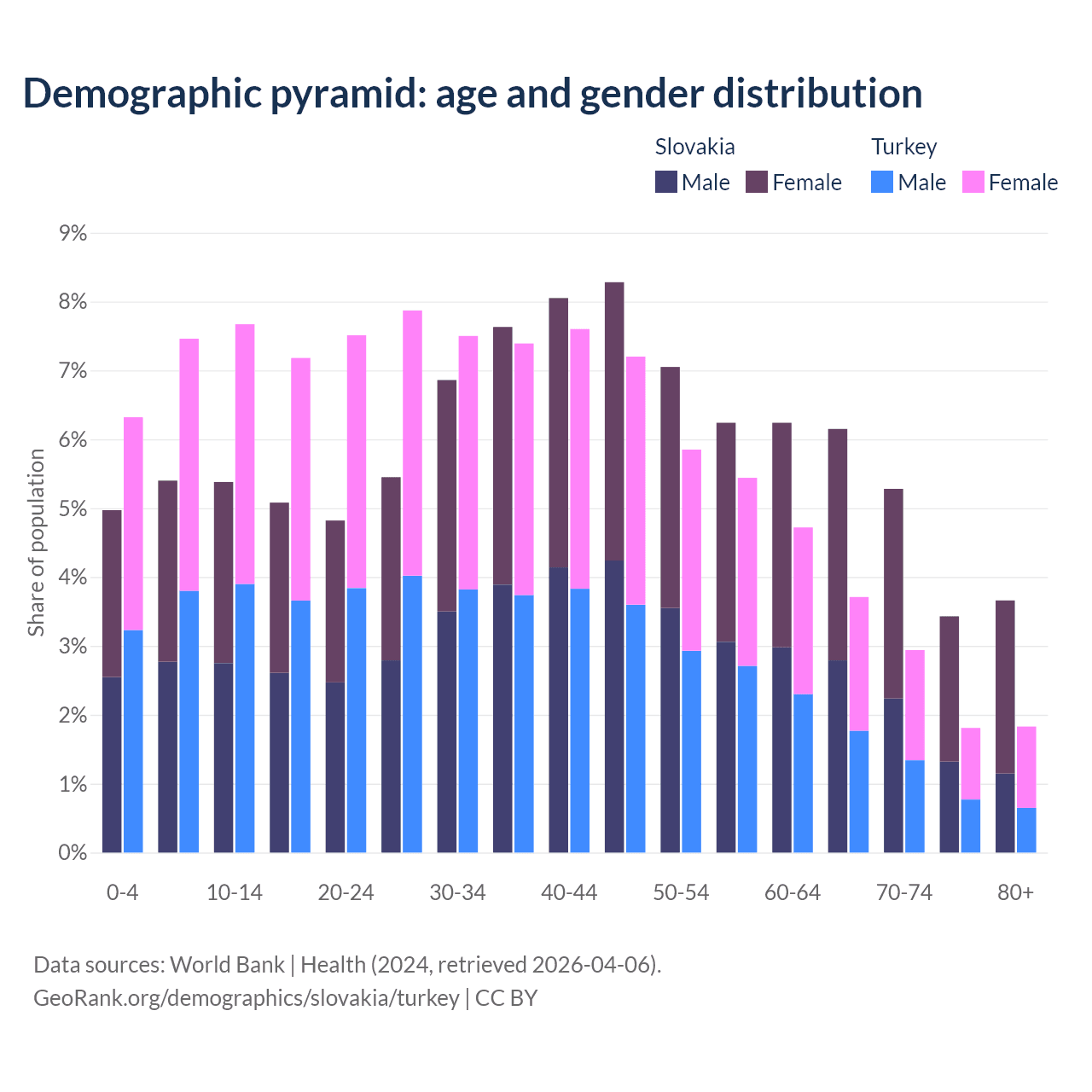 - Slovakia is ranked 31/196 by median age (oldest to youngest) vs 83/196 for Turkey.