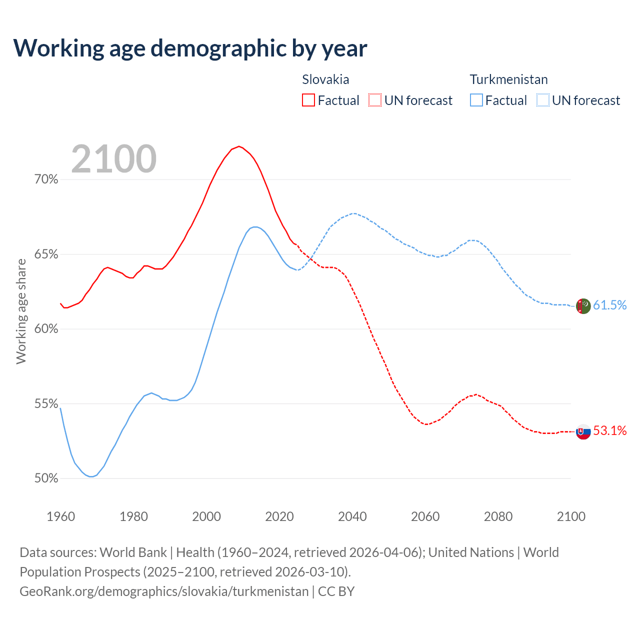 - Slovakia has 3.52M working age adults (aged 15-64) vs 4.97M in Turkmenistan.