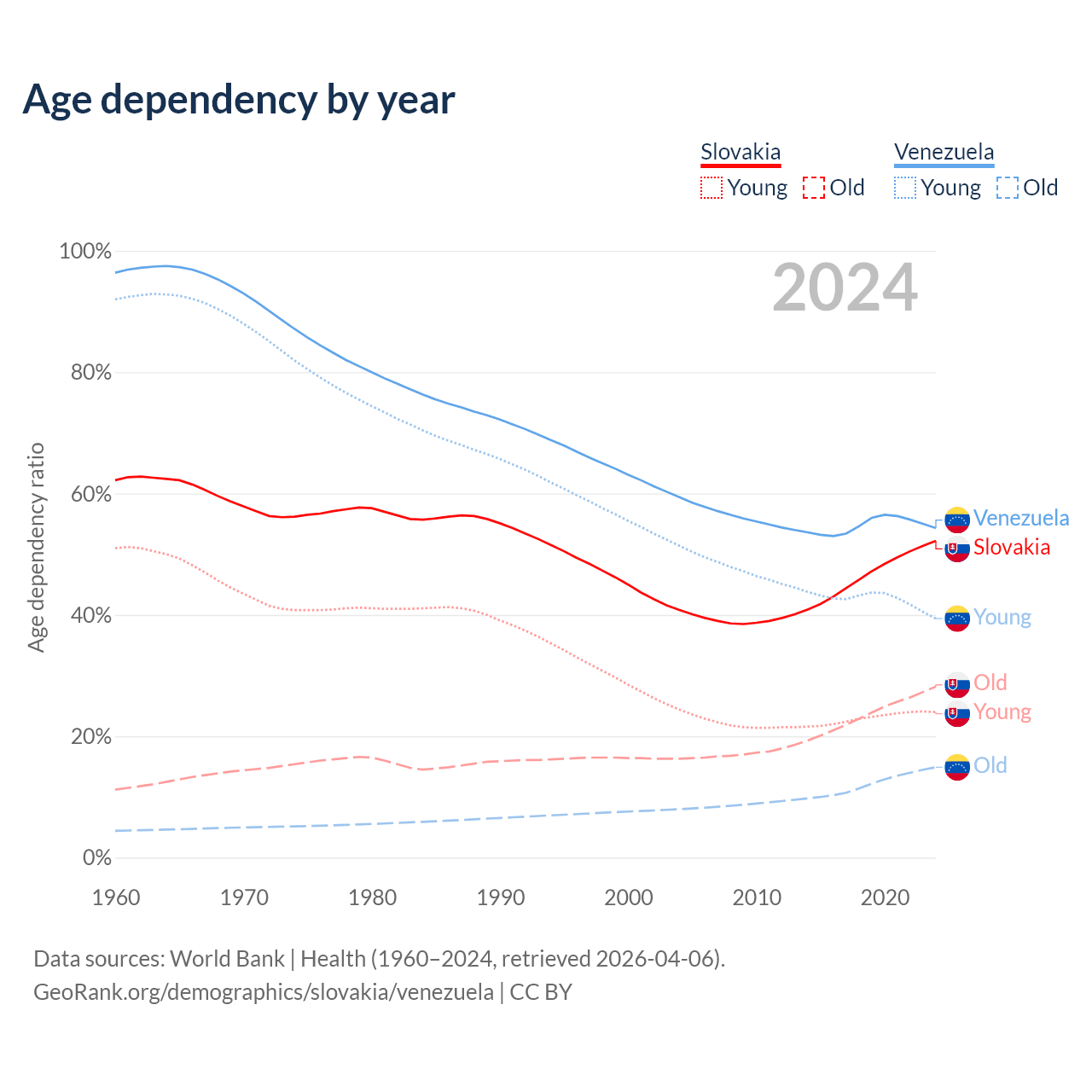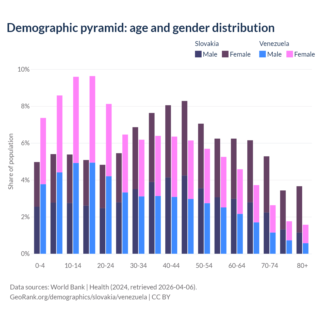 - Slovakia is ranked 31/196 by median age (oldest to youngest) vs 104/196 for Venezuela.