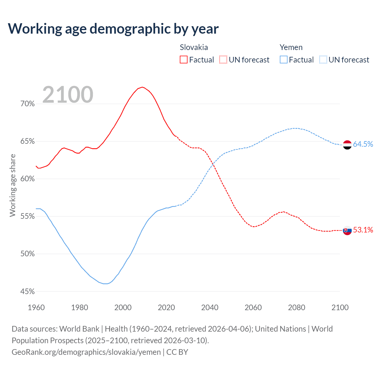 - Slovakia has 3.52M working age adults (aged 15-64) vs 24.4M in Yemen.