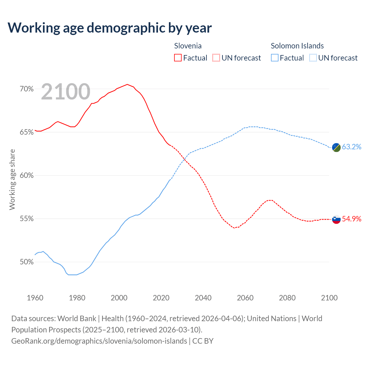 - Slovenia has 1.35M working age adults (aged 15-64) vs 513K in the Solomon Islands.