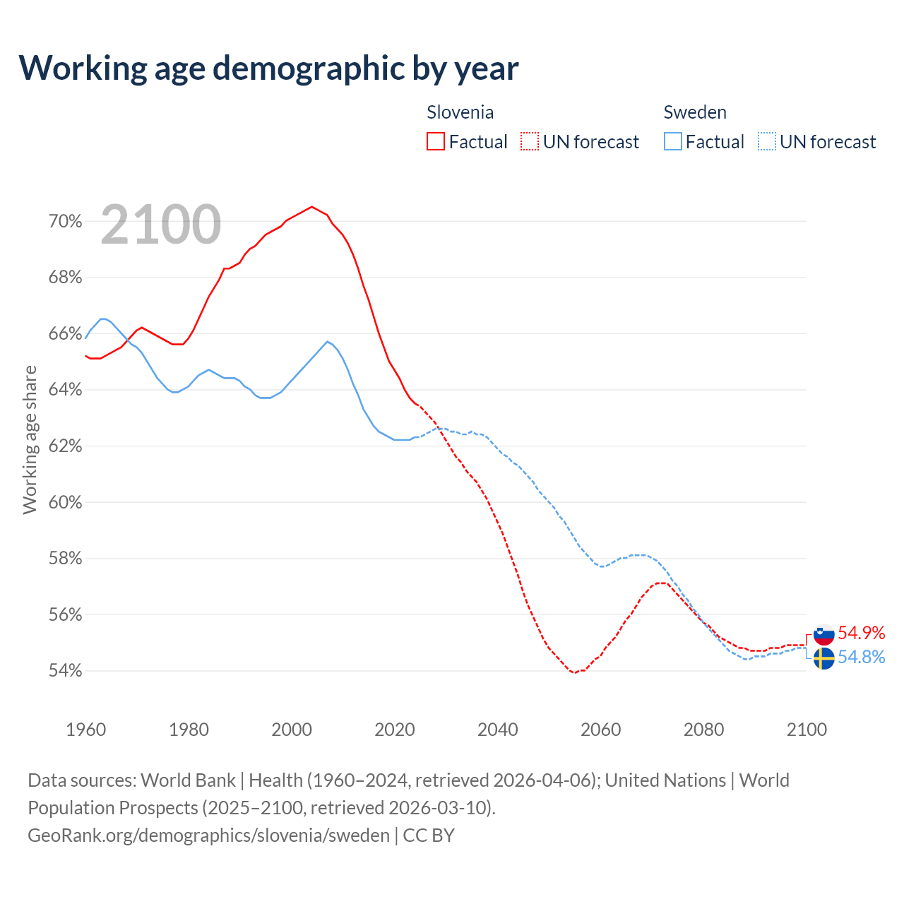 - Slovenia has 1.35M working age adults (aged 15-64) vs 6.65M in Sweden.