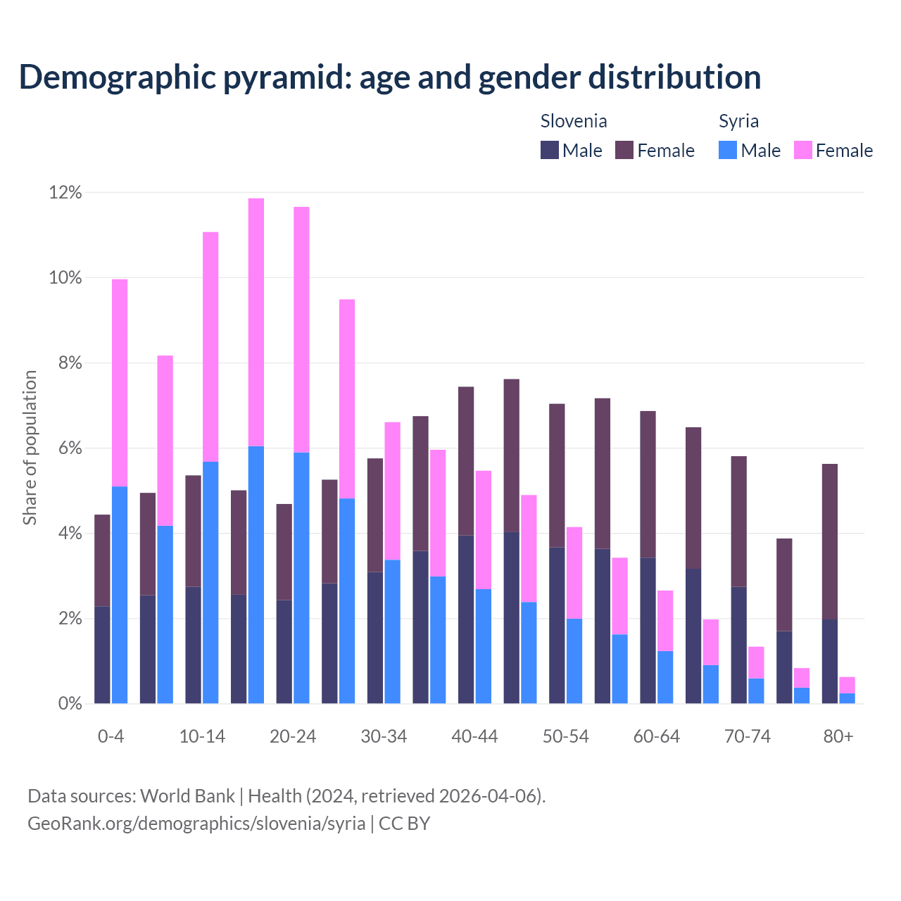 - As of 2026, the population of Slovenia is 2.12M vs 26.8M in Syria - 12.6 times difference.