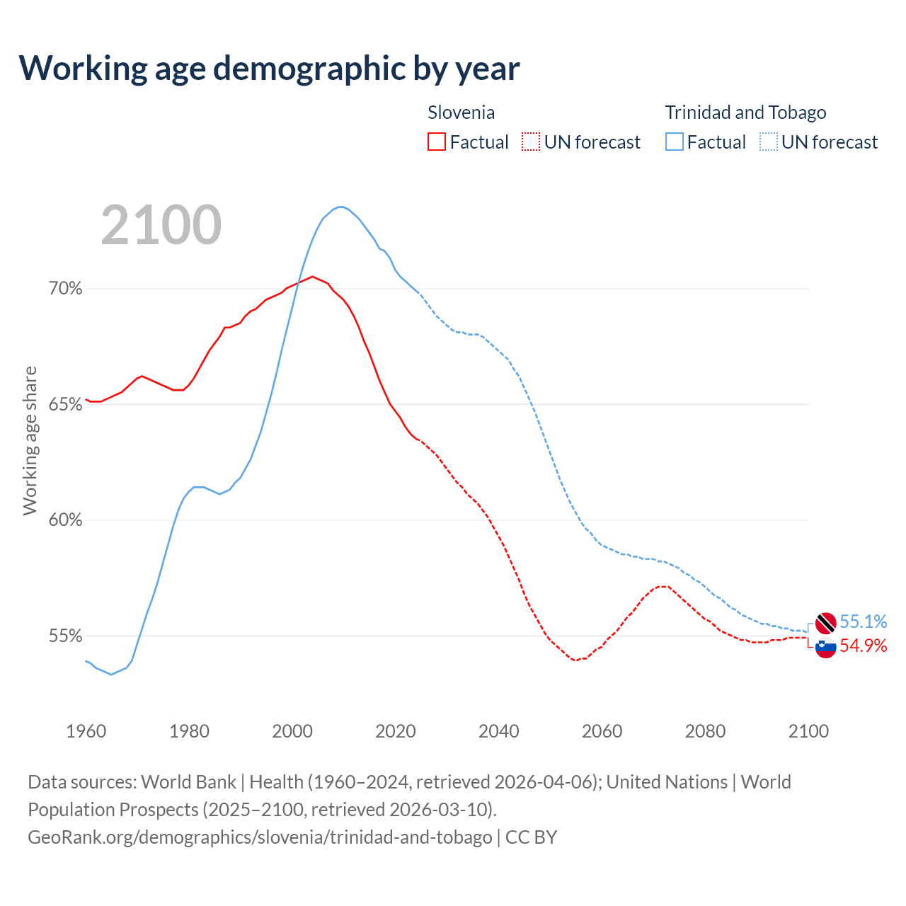 - Slovenia has 1.35M working age adults (aged 15-64) vs 960K in Trinidad and Tobago.