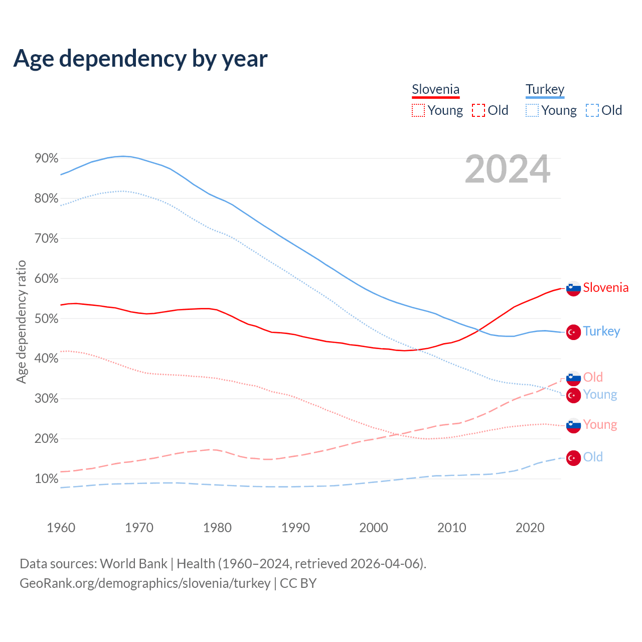 - Slovenia is ranked 14/196 by median age (oldest to youngest) vs 83/196 for Turkey.