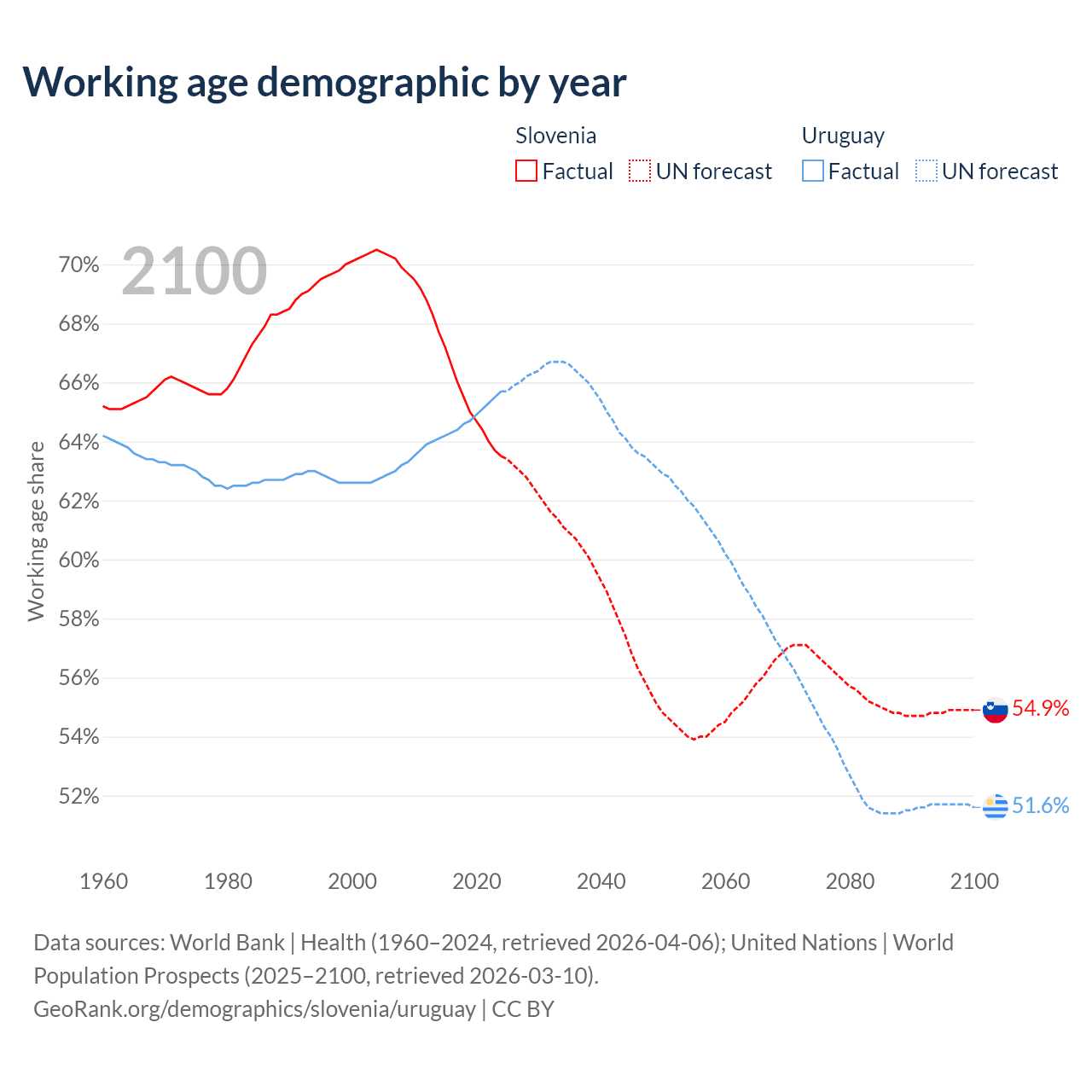 - Slovenia has 1.35M working age adults (aged 15-64) vs 2.22M in Uruguay.