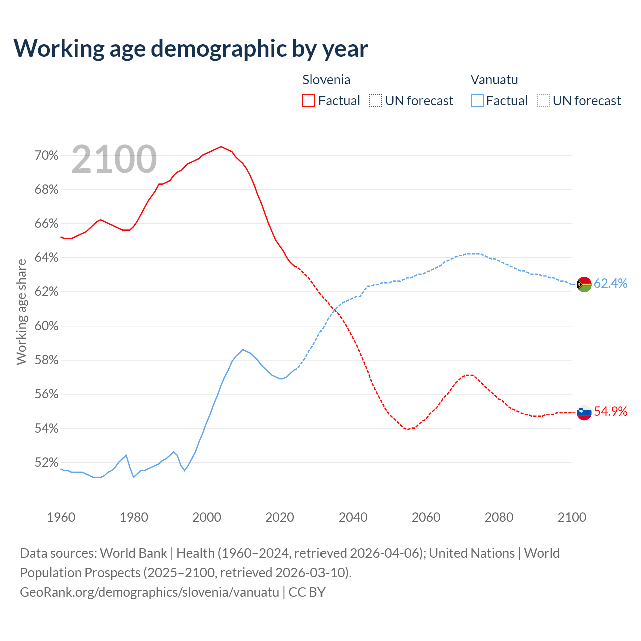 - Slovenia has 1.35M working age adults (aged 15-64) vs 198K in Vanuatu.