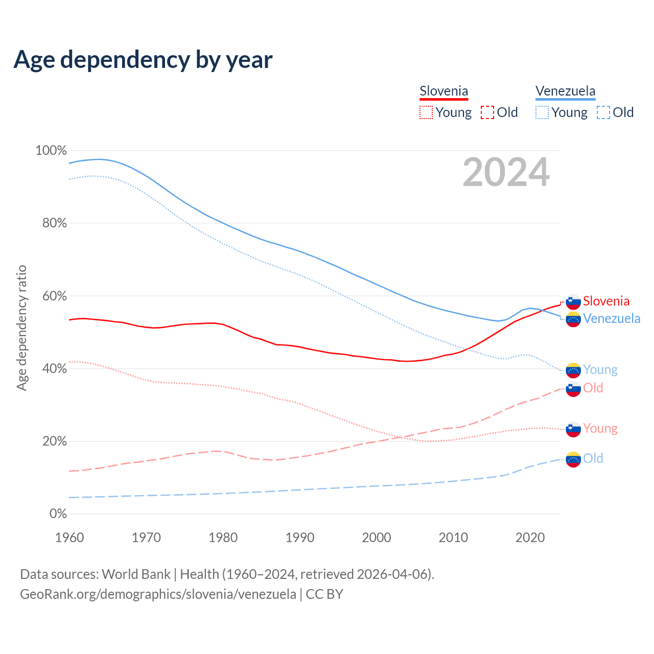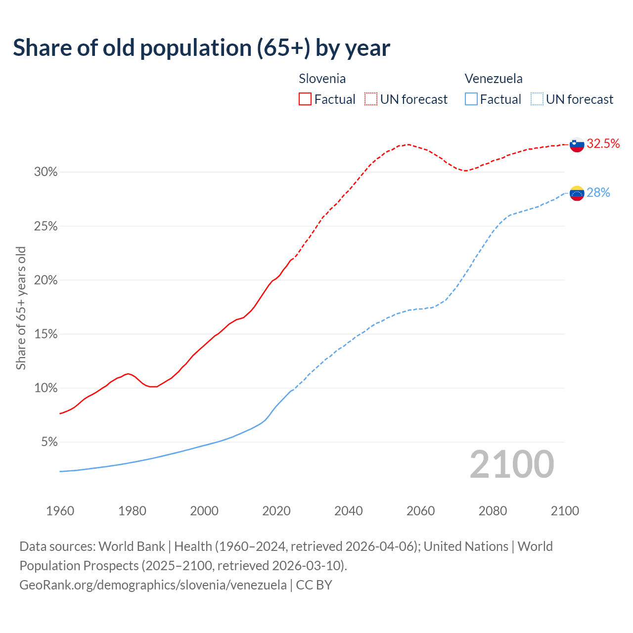 - The share of old-age demographic (65+) in Slovenia is 21.8% vs 9.68% in Venezuela.