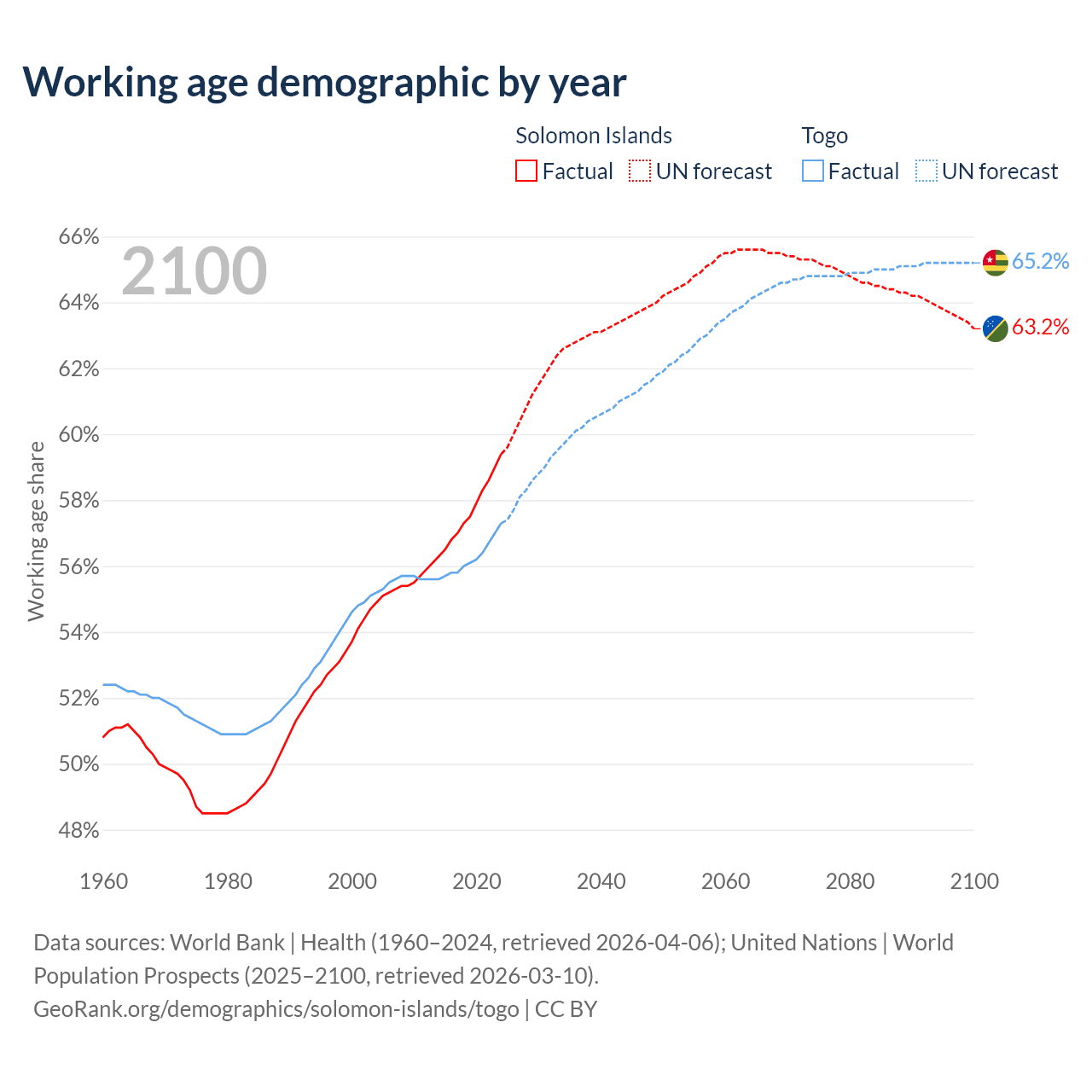 - The Solomon Islands has 513K working age adults (aged 15-64) vs 5.72M in Togo.