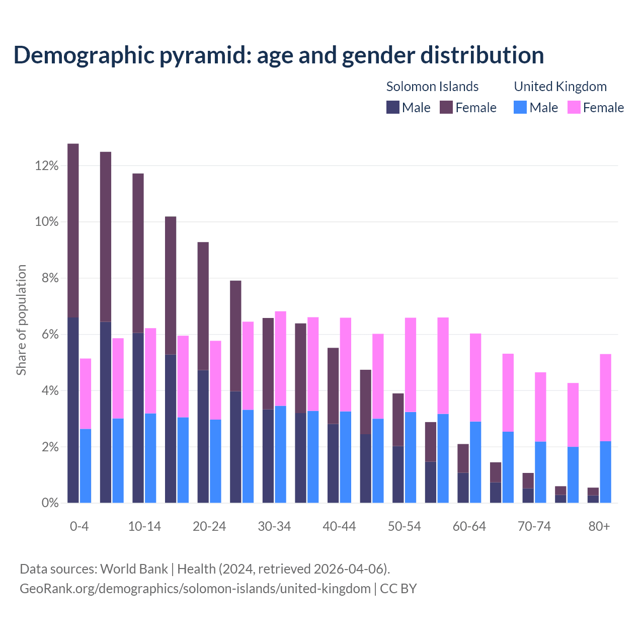 Demographics of the Solomon Islands compared to the United Kingdom: