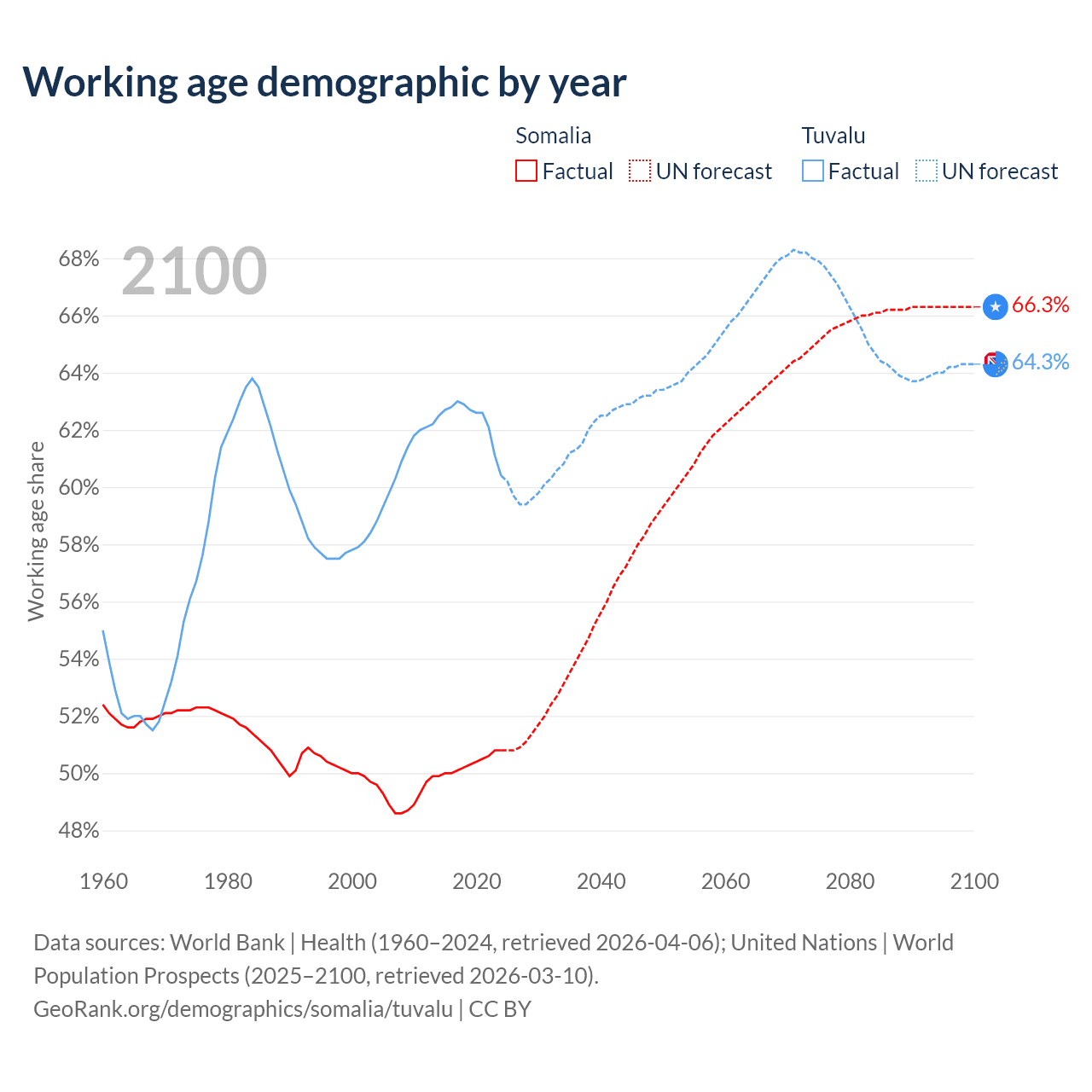 - Somalia has 10.4M working age adults (aged 15-64) vs 5.64K in Tuvalu.