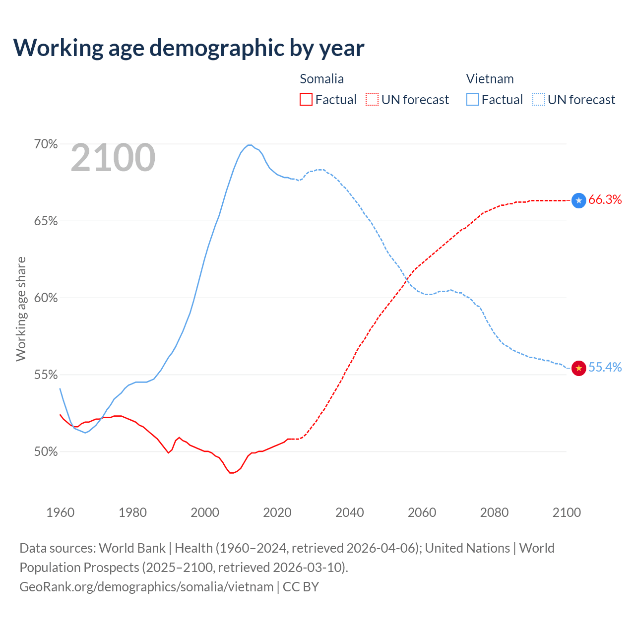 - Somalia has 10.4M working age adults (aged 15-64) vs 69.3M in Vietnam.