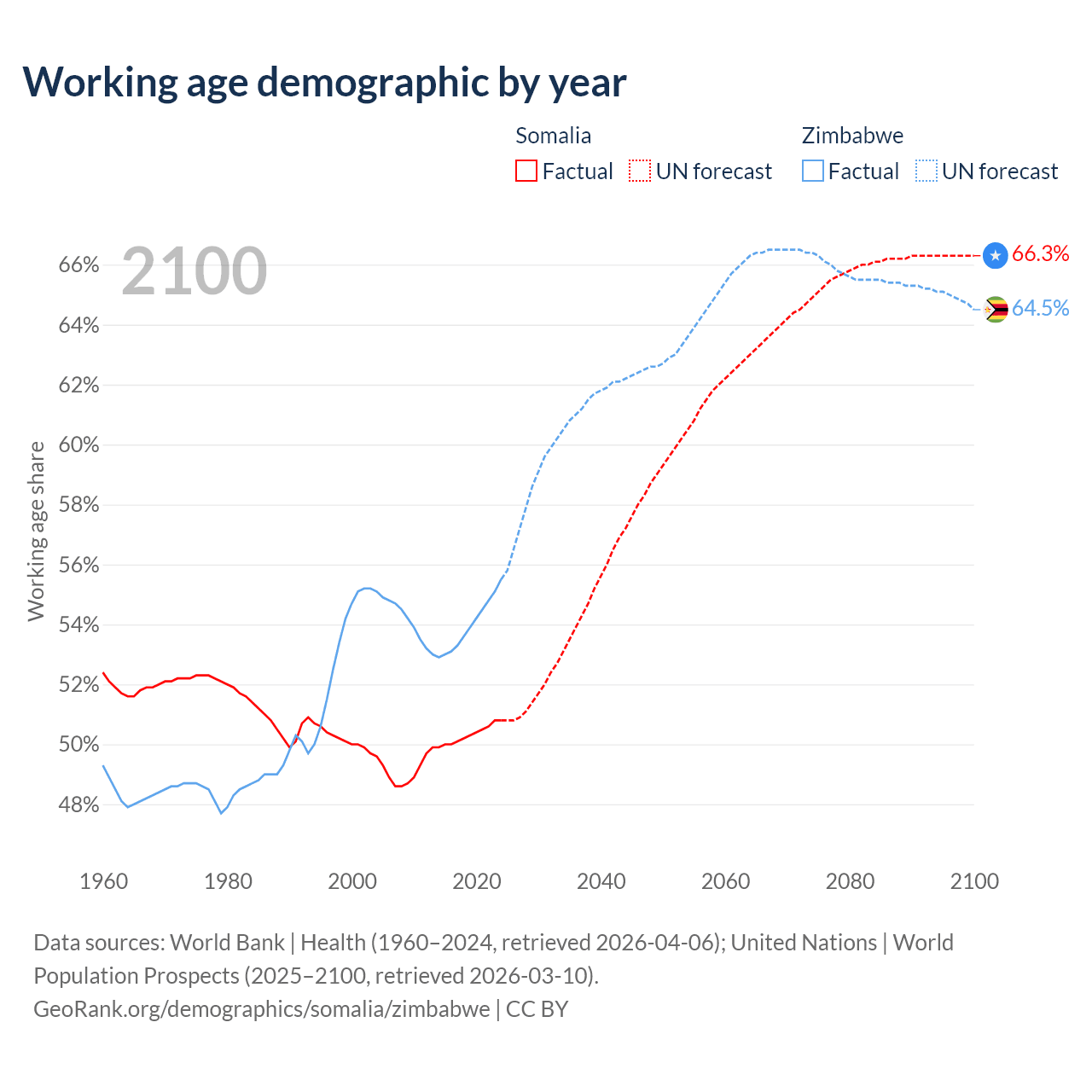 - Somalia has 10.4M working age adults (aged 15-64) vs 9.64M in Zimbabwe.