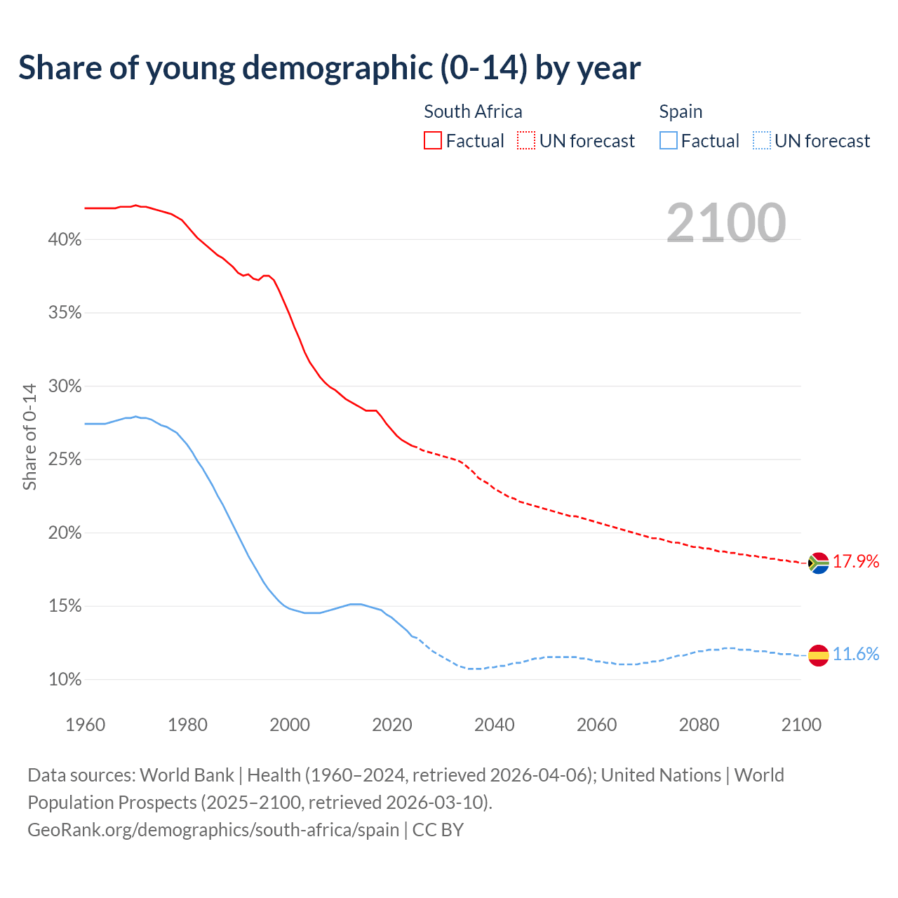 - The share of young demographic (0-15 years old) in South Africa is 25.9% vs 12.9% in Spain.
