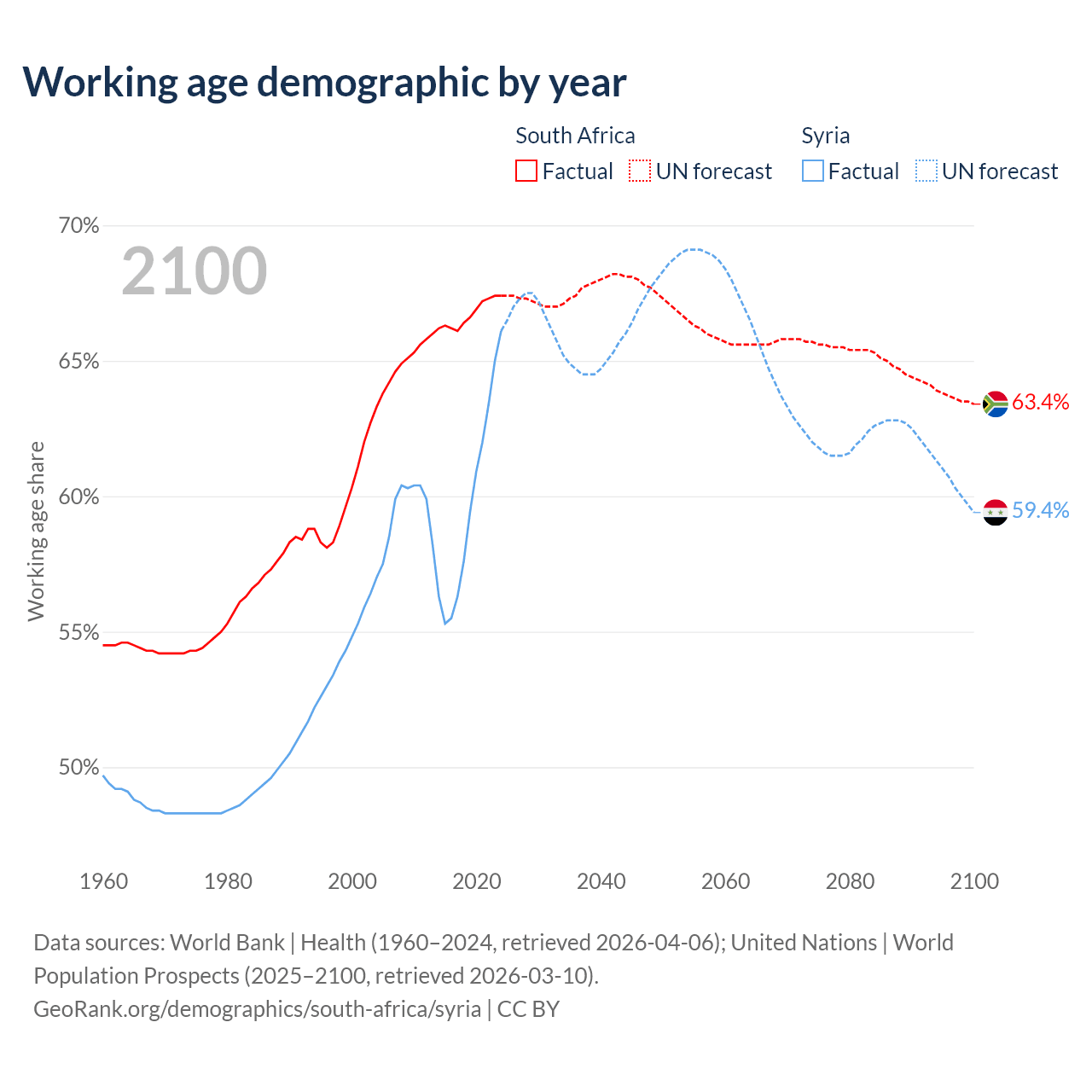 - South Africa has 44.3M working age adults (aged 15-64) vs 17.7M in Syria.