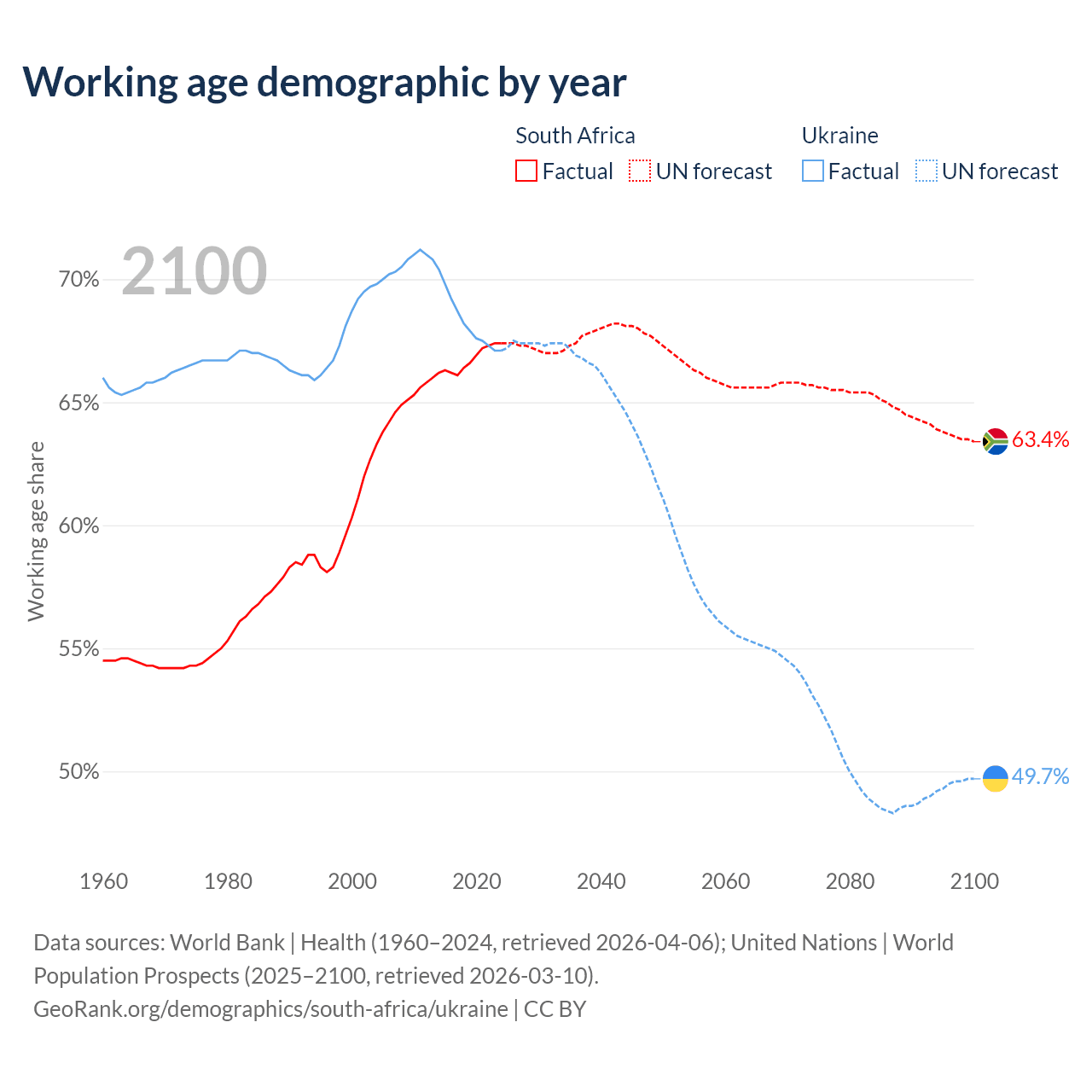 - South Africa has 44.3M working age adults (aged 15-64) vs 26.9M in Ukraine.