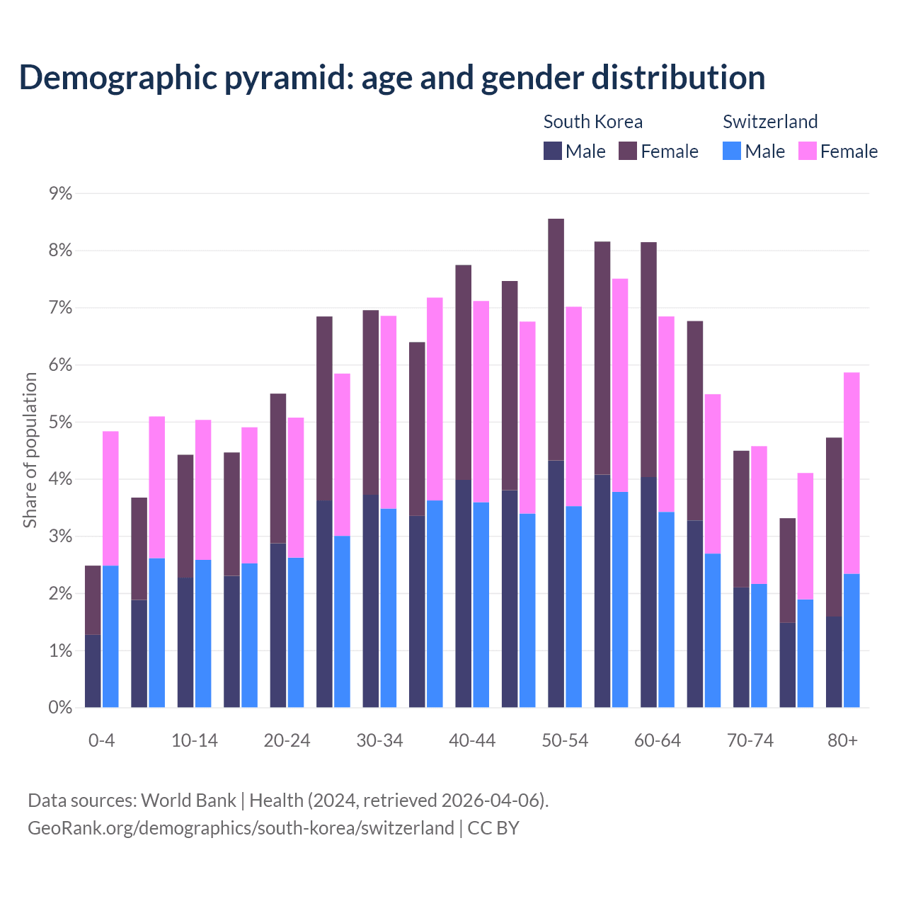 Demographics of South Korea compared to Switzerland: