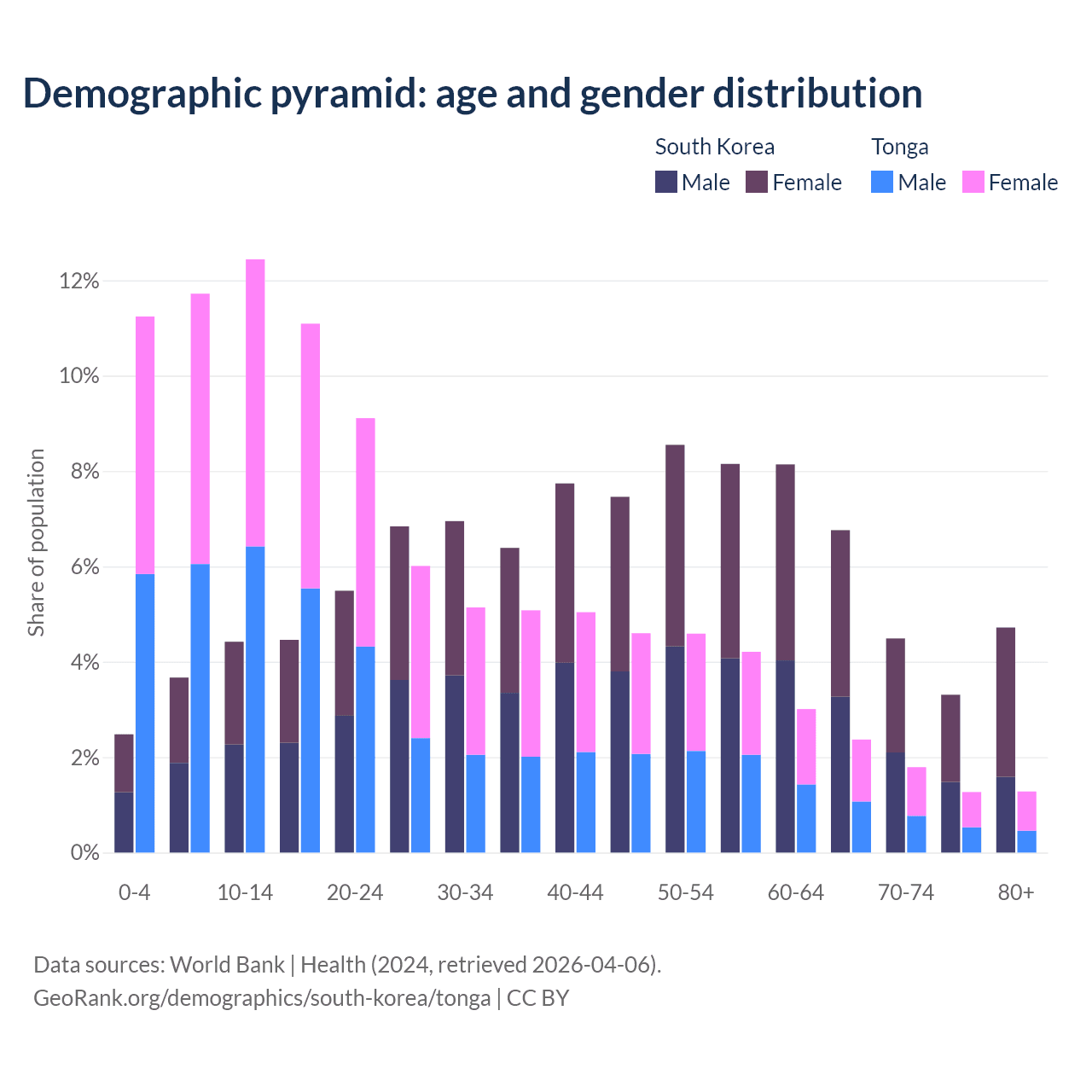 Demographics of South Korea compared to Tonga: