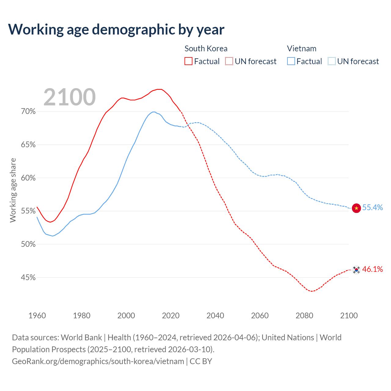 - South Korea has 36.2M working age adults (aged 15-64) vs 69.3M in Vietnam.