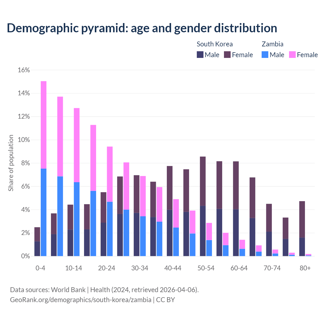 Demographics of South Korea compared to Zambia: